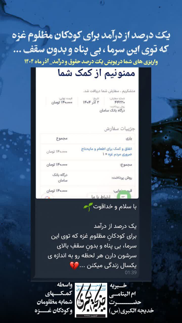 بنیاد خیریه فرهنگی اُمُّ الْيَتامىٰ خديجة الكبرىٰ سلام الله عليها ، حرکتی فراملیّتی ، فرادینی و بدونِ مرز ، به منظور پشتیبانی از مظلومان ، مستضعفان و مجاهدتِ فی سبیل الله ، بر اساس آیه ی شریفه ی 273 بقره تاسیس گردید