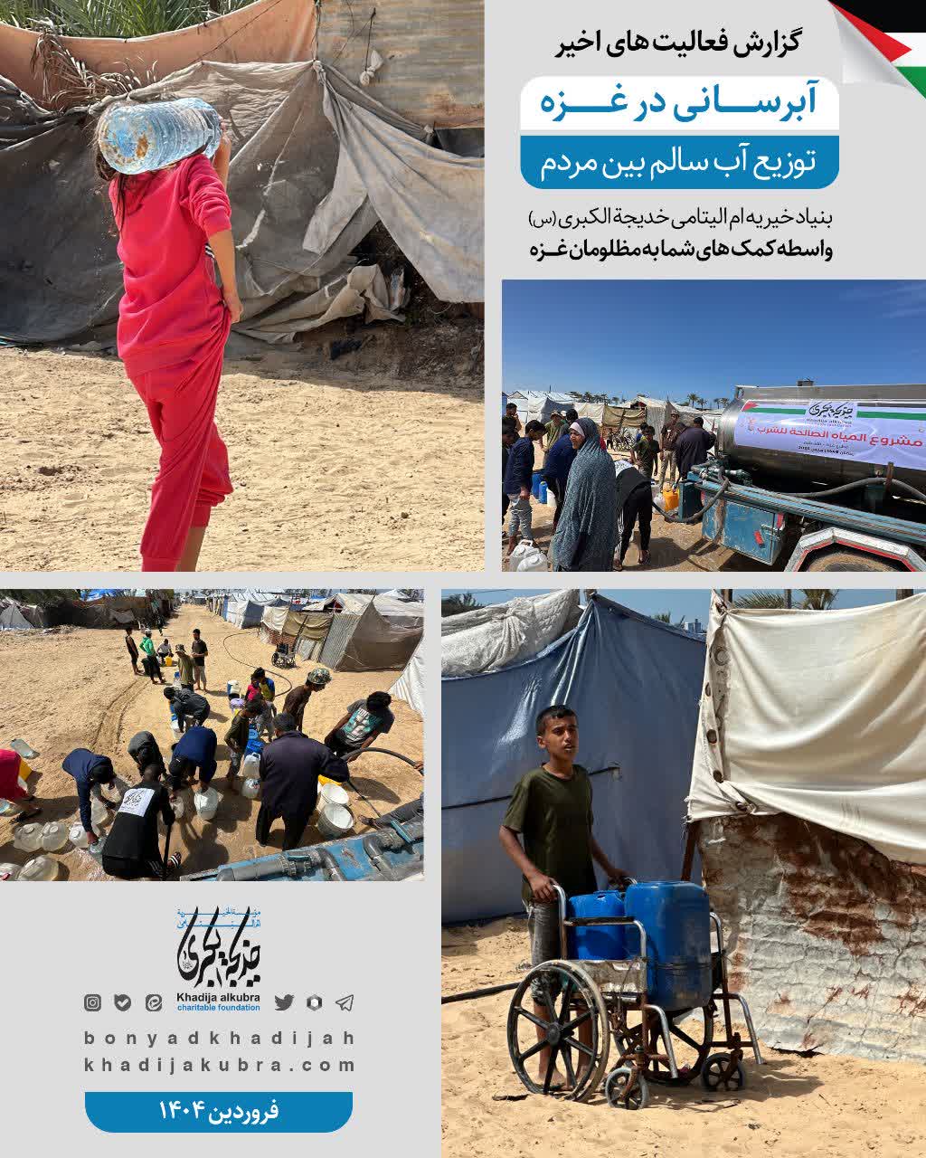 اطعام (غذای گرم) و توزیع آب سالم توسط بنیاد خیریه ام‌الیتامی خدیجة الکبری علیها‌السلام در غزه در حال انجام است.