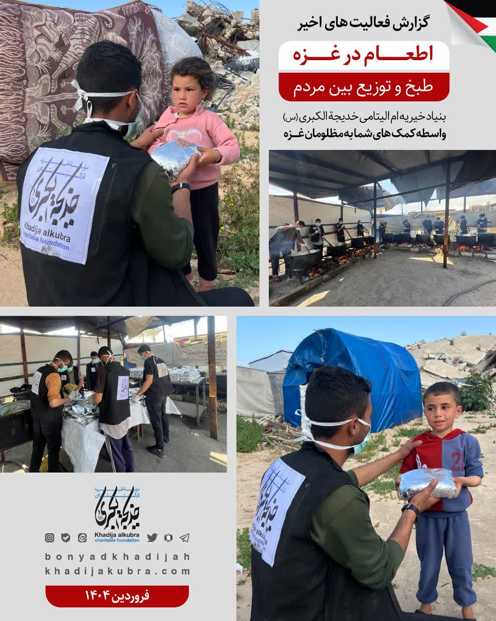 اطعام مردم مظلوم غزه توسط بنیاد خیریه امالیتامی خدیجة الکبری علیهاالسلام، هر روز بدون وقفه انجام میگردد.