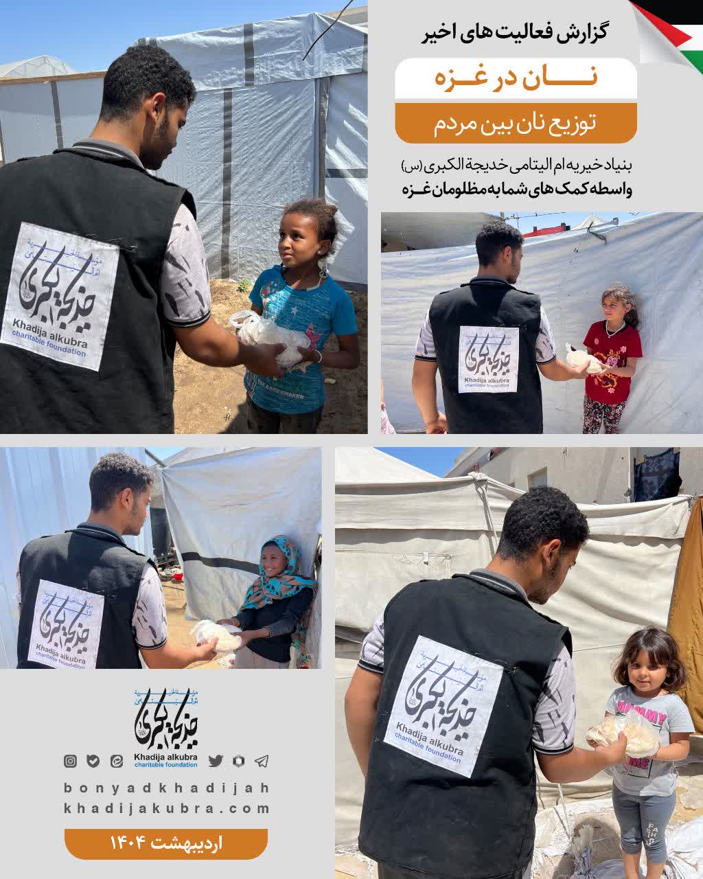 اطعام (غذای گرم)، توزیع آب سالم، سبزیجات و نان توسط بنیاد خیریه ام‌الیتامی خدیجة الکبری علیها‌السلام در غزه در حال انجام است.