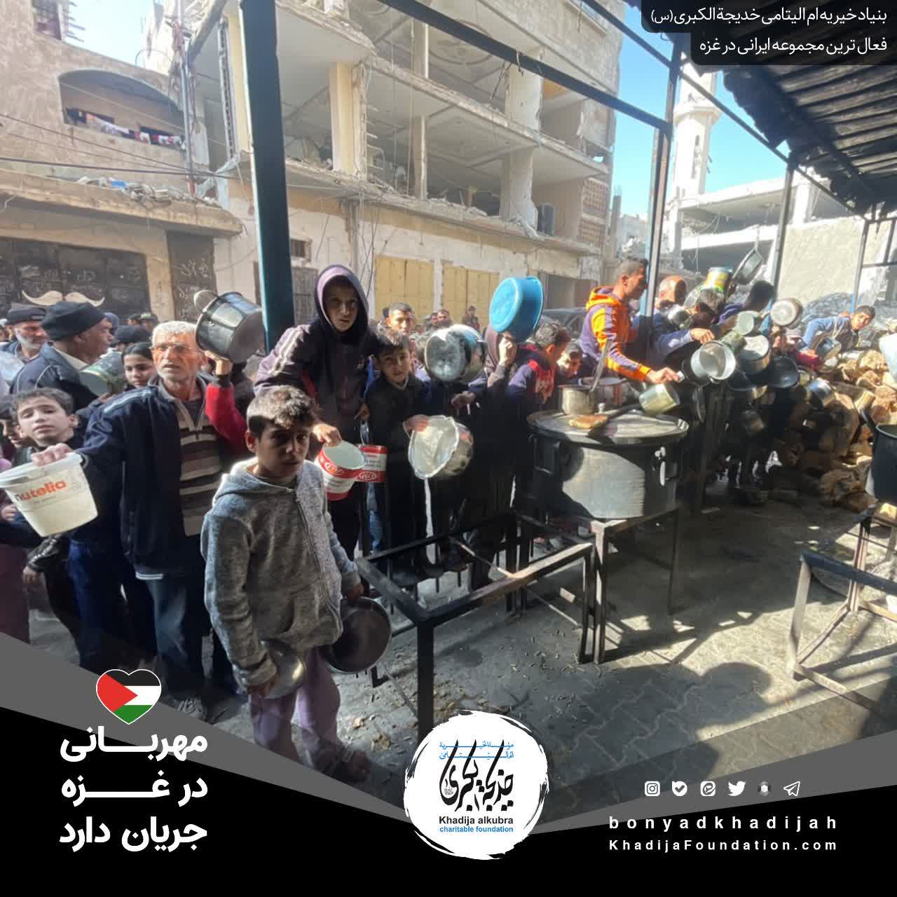 اطعام مردم مظلوم غزه توسط بنیاد خیریه ام‌الیتامی خدیجة الکبری علیها‌السلام، هر روز بدون وقفه انجام می‌گردد.