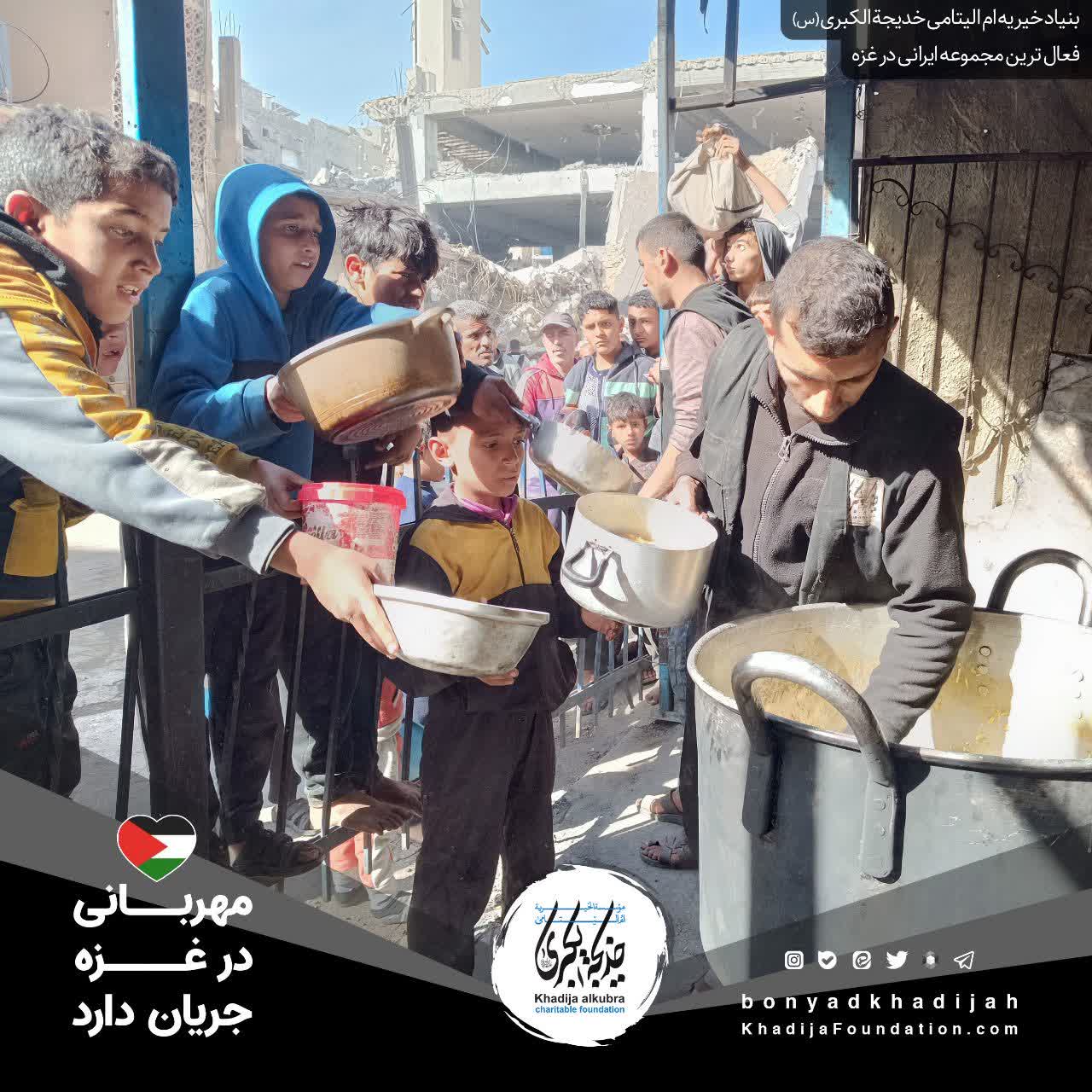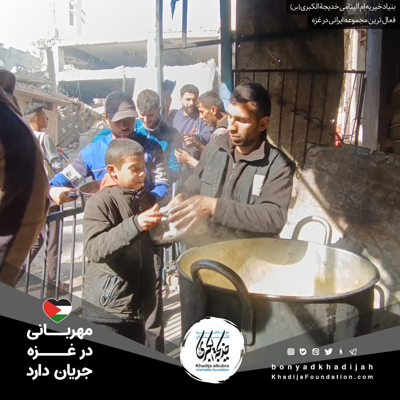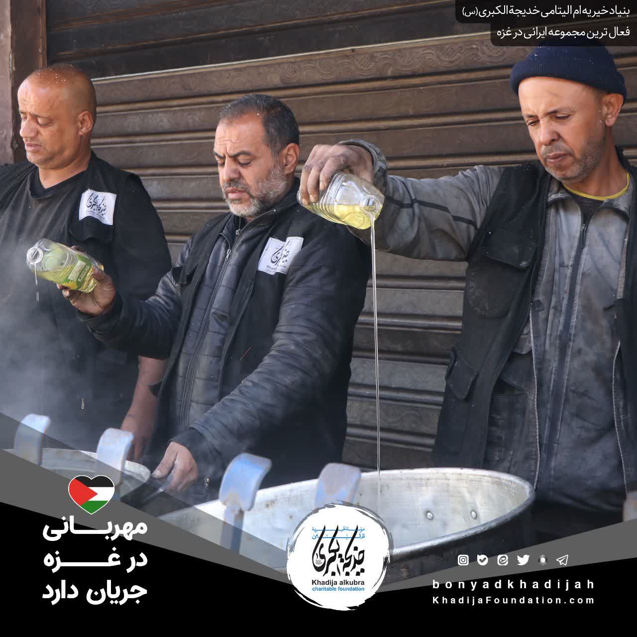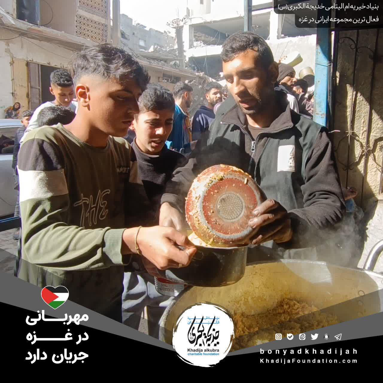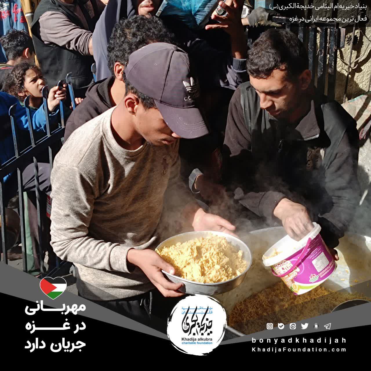 اطعام مردم مظلوم غزه توسط بنیاد خیریه ام‌الیتامی خدیجة الکبری علیها‌السلام، هر روز بدون وقفه انجام می‌گردد.