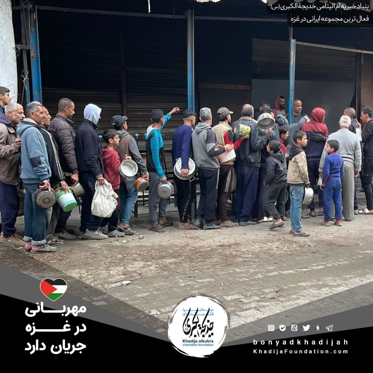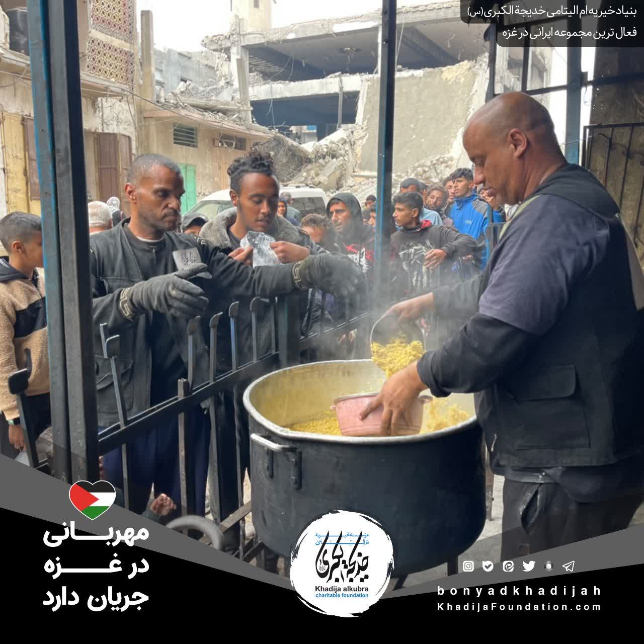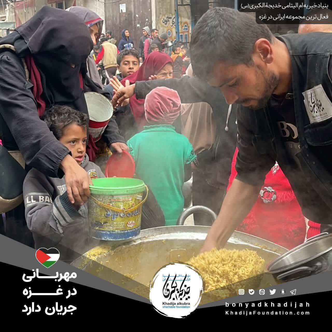 اطعام مردم مظلوم غزه توسط بنیاد خیریه ام‌الیتامی خدیجة الکبری علیها‌السلام، هر روز بدون وقفه انجام می‌گردد.