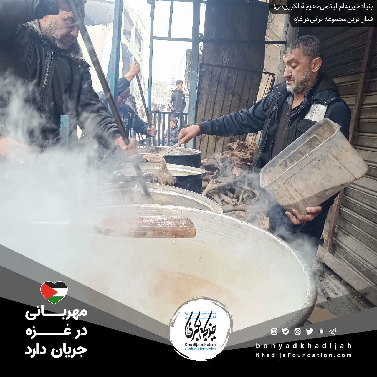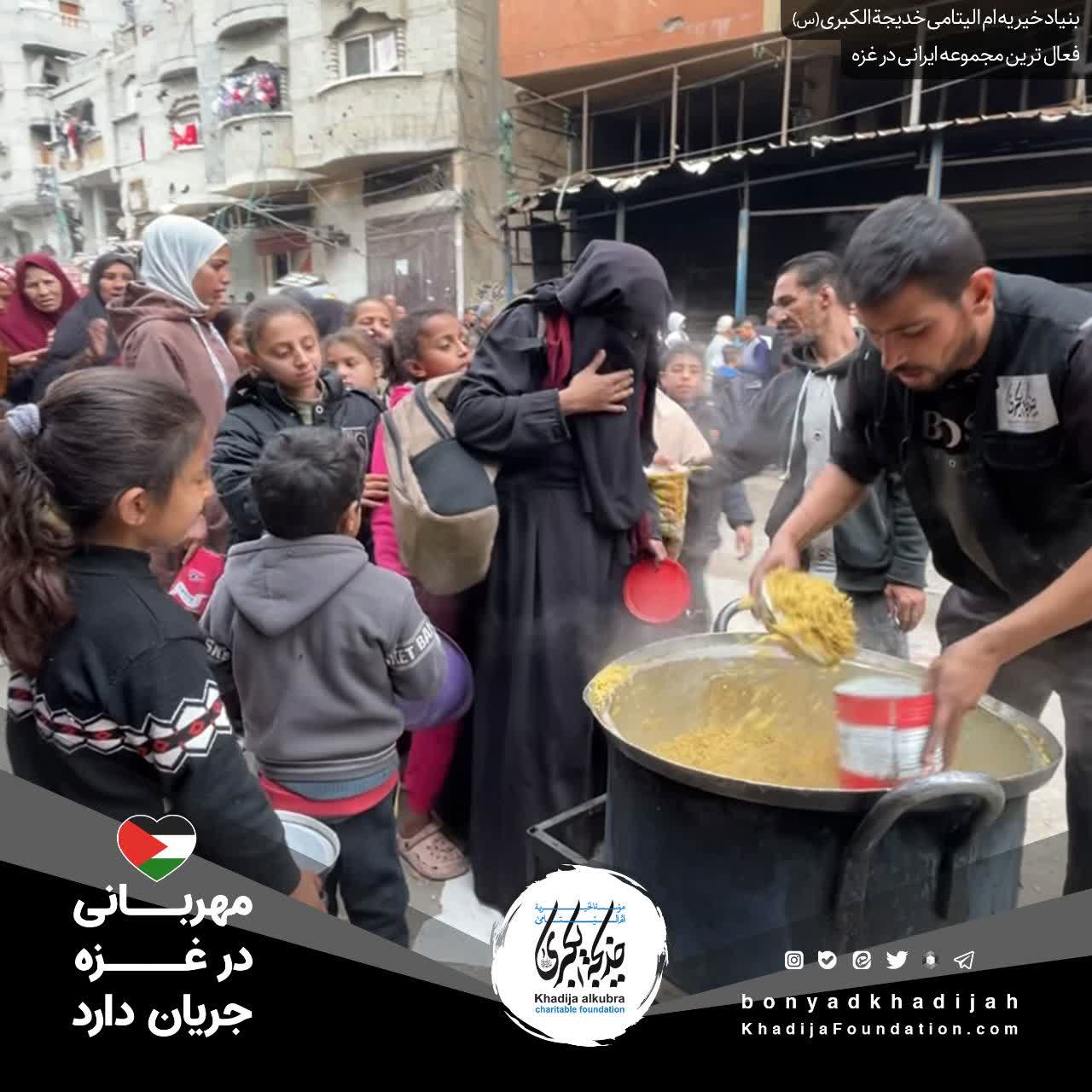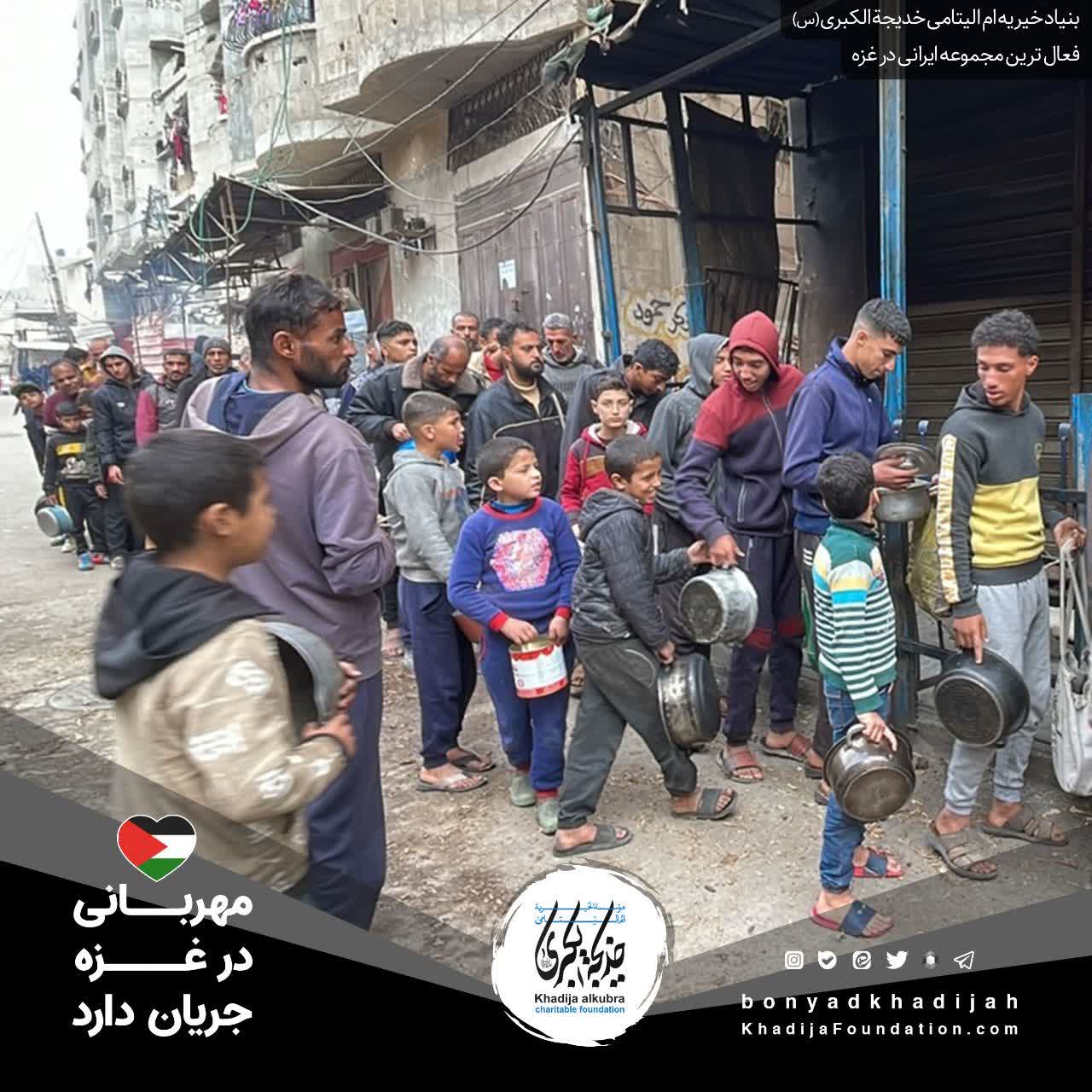 اطعام مردم مظلوم غزه توسط بنیاد خیریه ام‌الیتامی خدیجة الکبری علیها‌السلام، هر روز بدون وقفه انجام می‌گردد.
