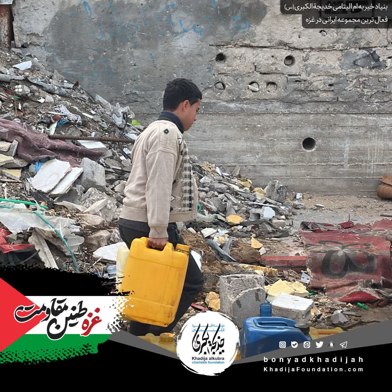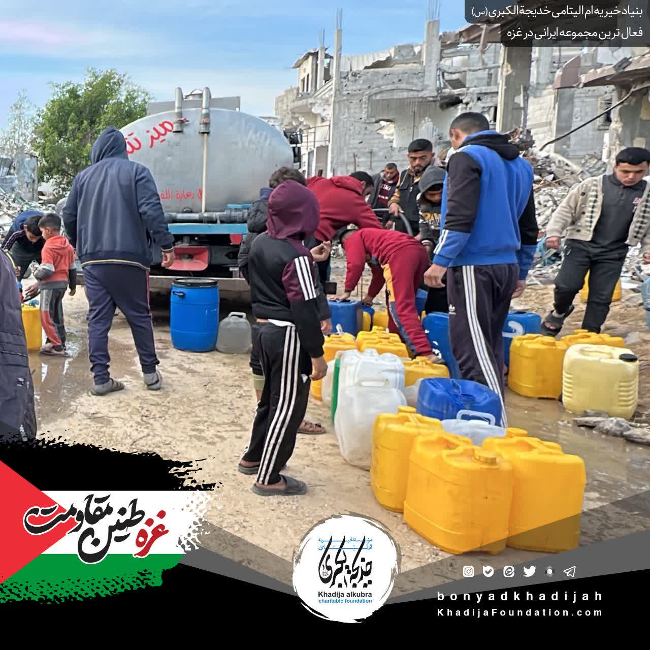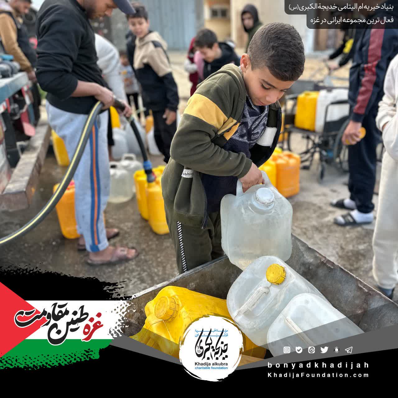 ما در بنیاد خیریه ام‌الیتامی خدیجة الکبری علیها‌السلام، به پشتوانه‌ی مهر شما، هر روز به مردمِ مظلوم غزه آب می‌رسانیم…