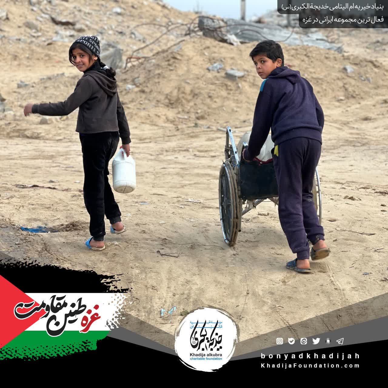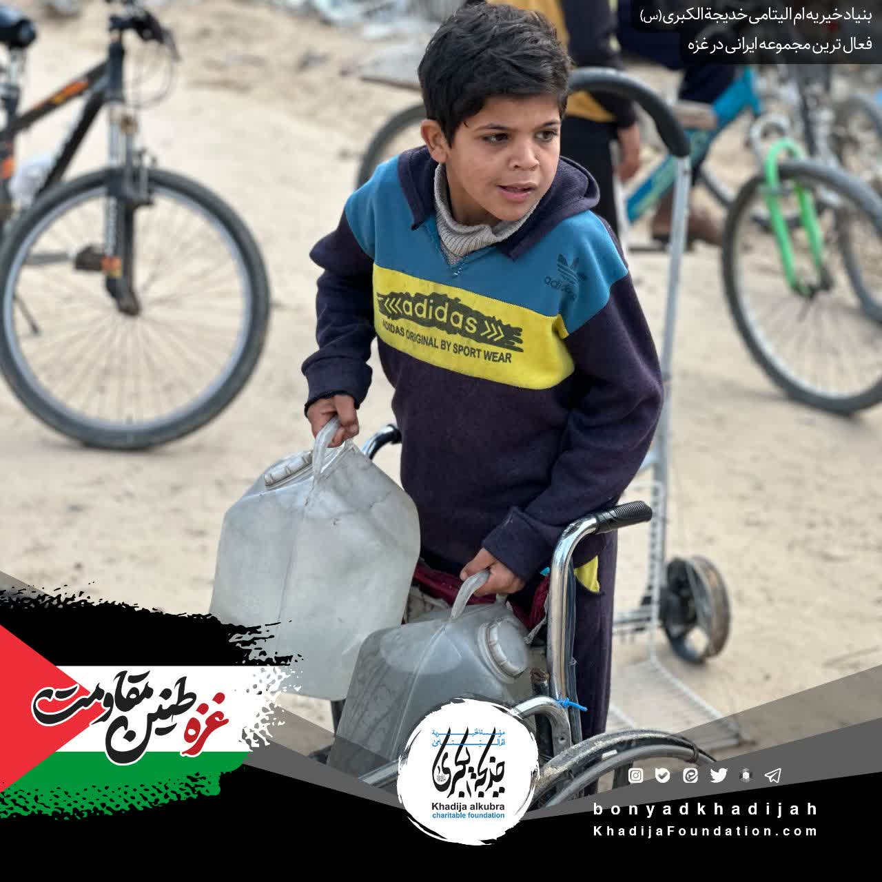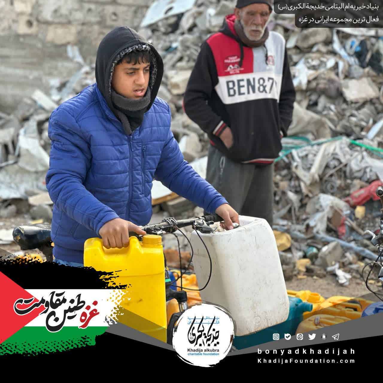 ما در بنیاد خیریه ام‌الیتامی خدیجة الکبری علیها‌السلام، به پشتوانه‌ی مهر شما، هر روز به مردمِ مظلوم غزه آب می‌رسانیم…
