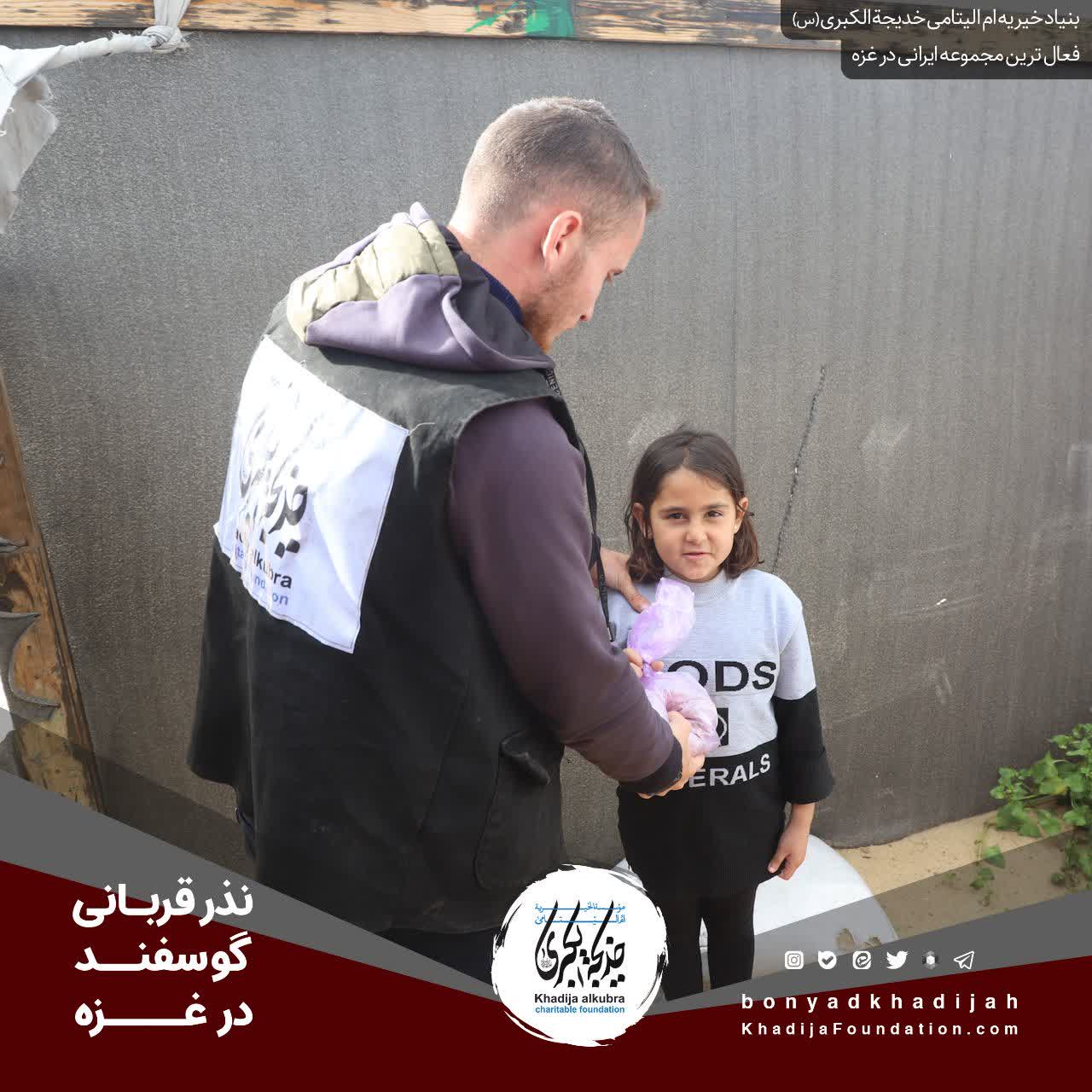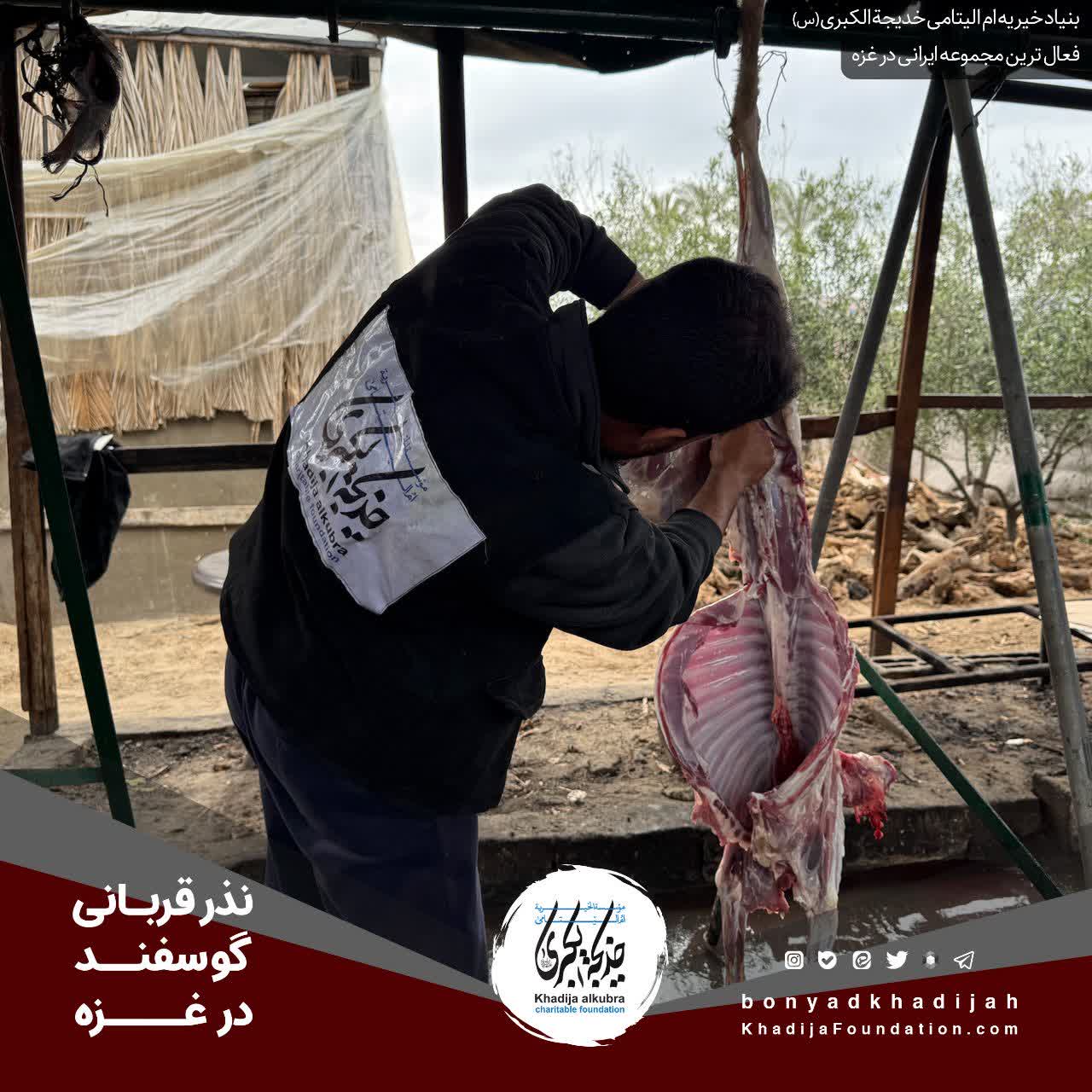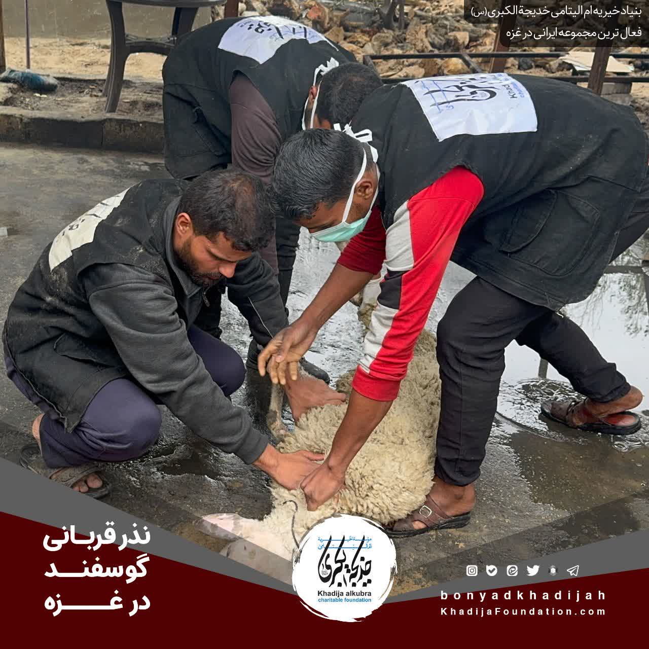 انجام نذر قربانی گوسفند حسب نذر حاجيه خانم رضوى برای یتیمان و مظلومانِ در محاصرهى غزّه.