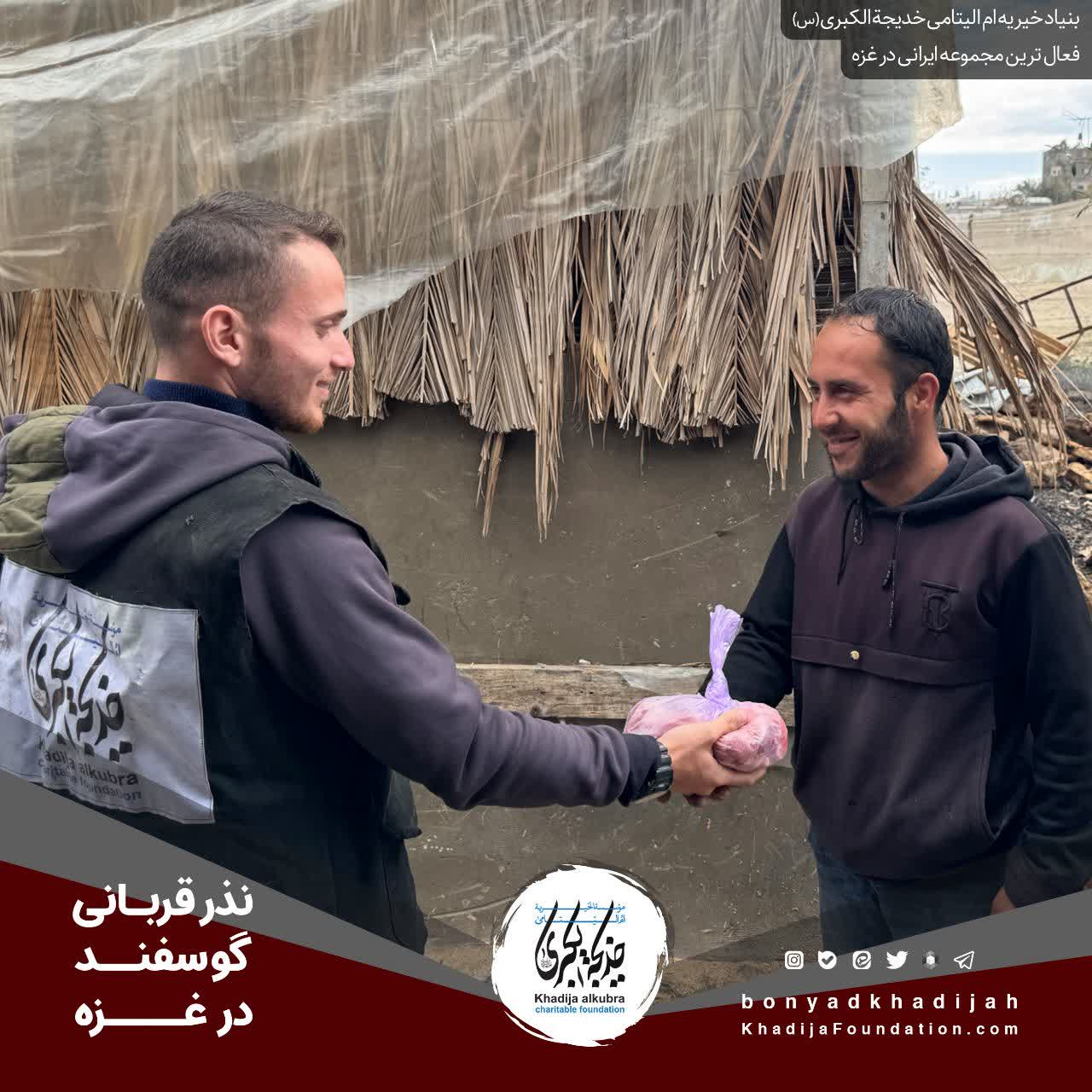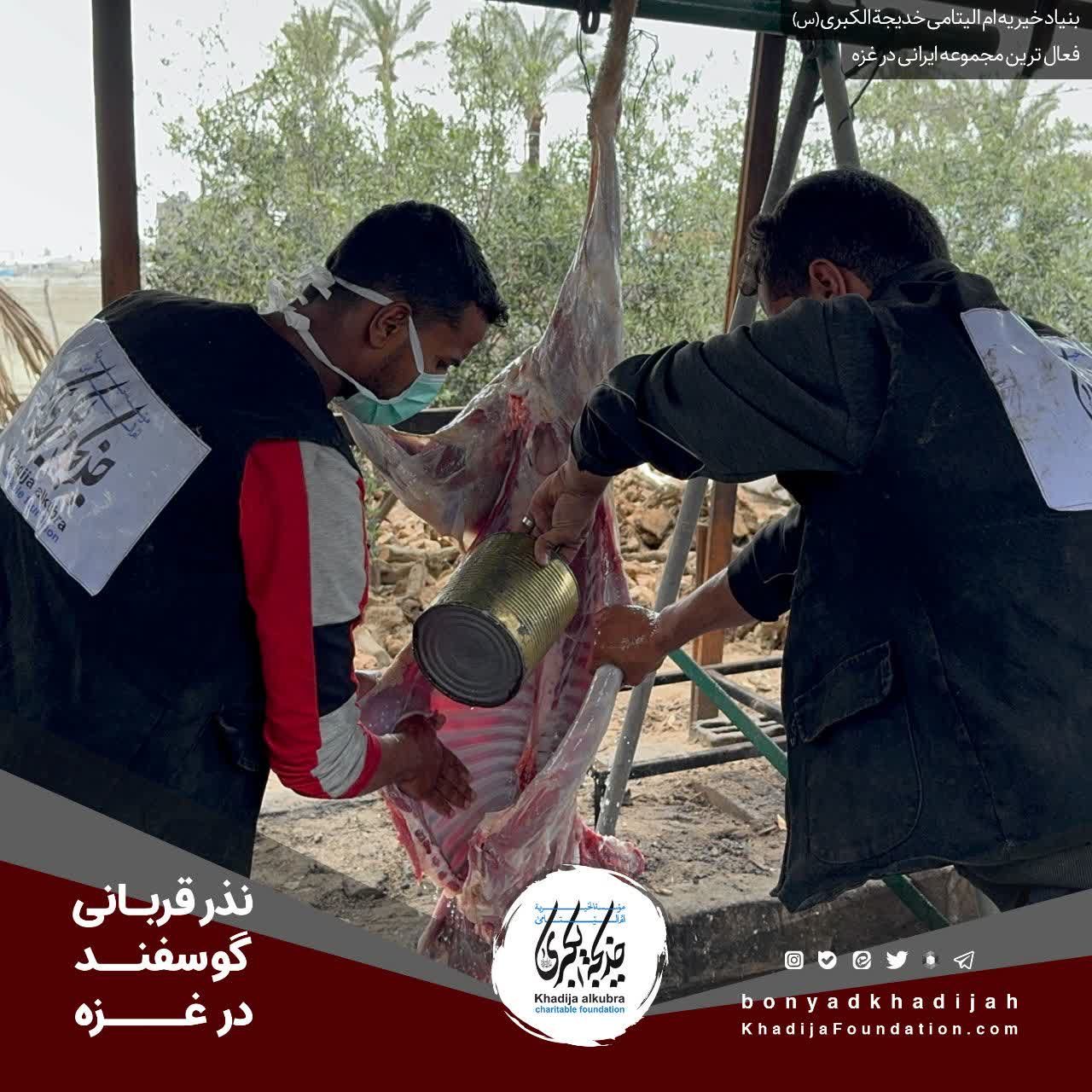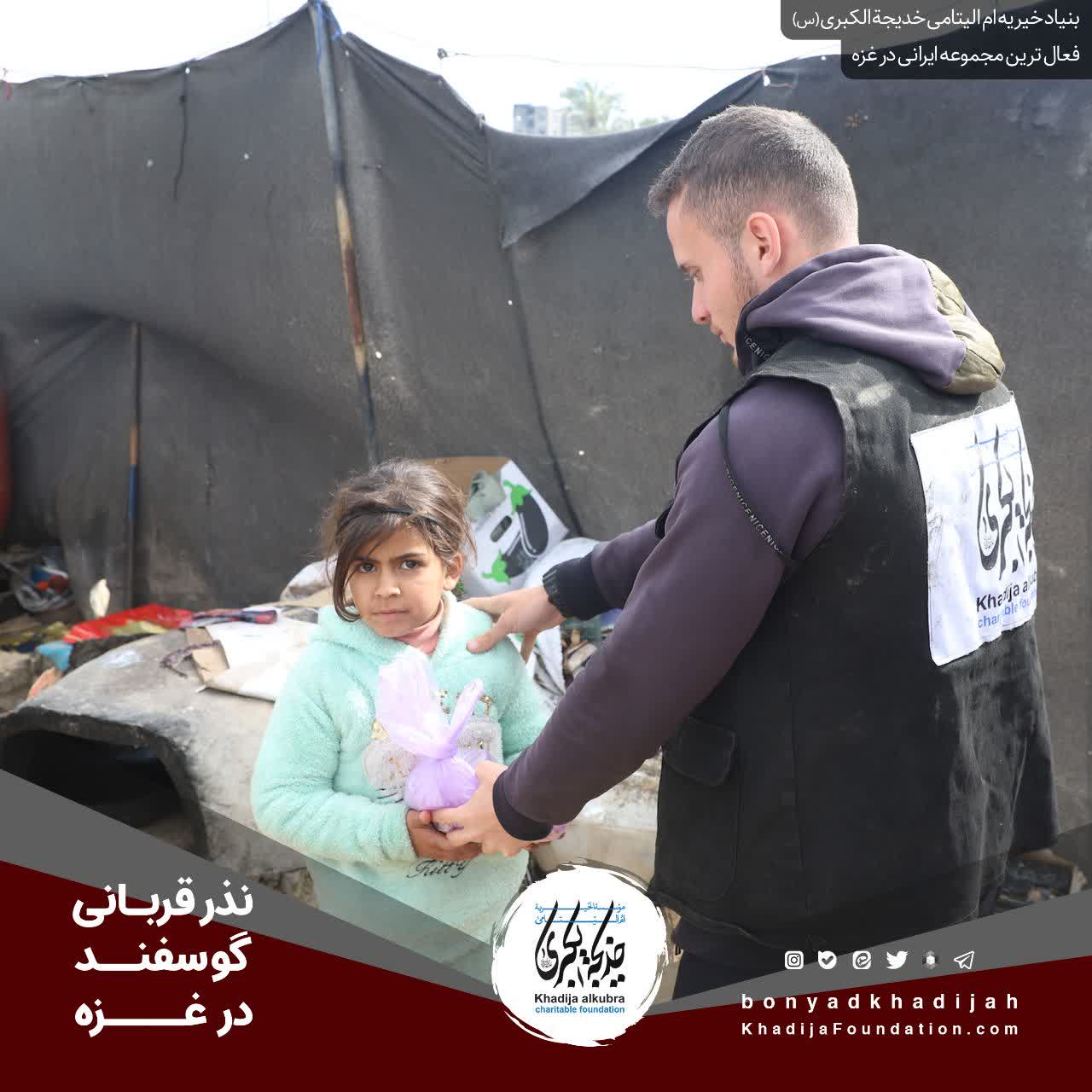 انجام نذر قربانی گوسفند حسب نذر حاجيه خانم رضوى برای یتیمان و مظلومانِ در محاصرهى غزّه.