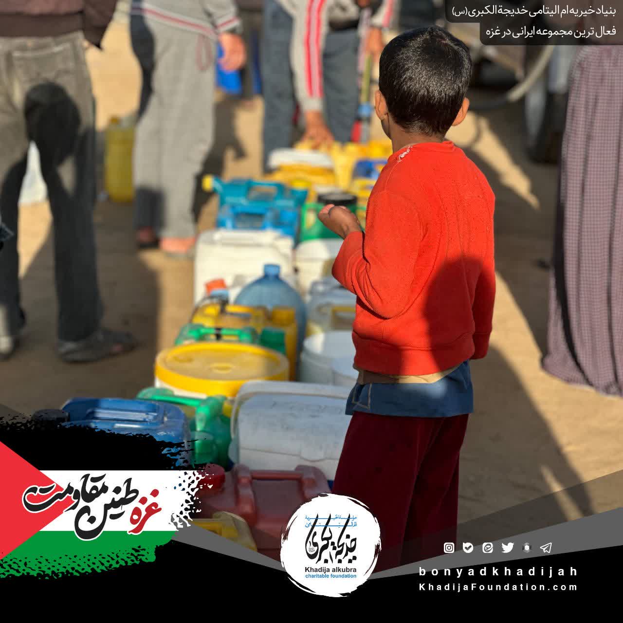 ما در بنیاد خیریه ام‌الیتامی خدیجة الکبری علیها‌السلام، به پشتوانه‌ی مهر شما، هر روز به مردمِ مظلوم غزه آب می‌رسانیم…