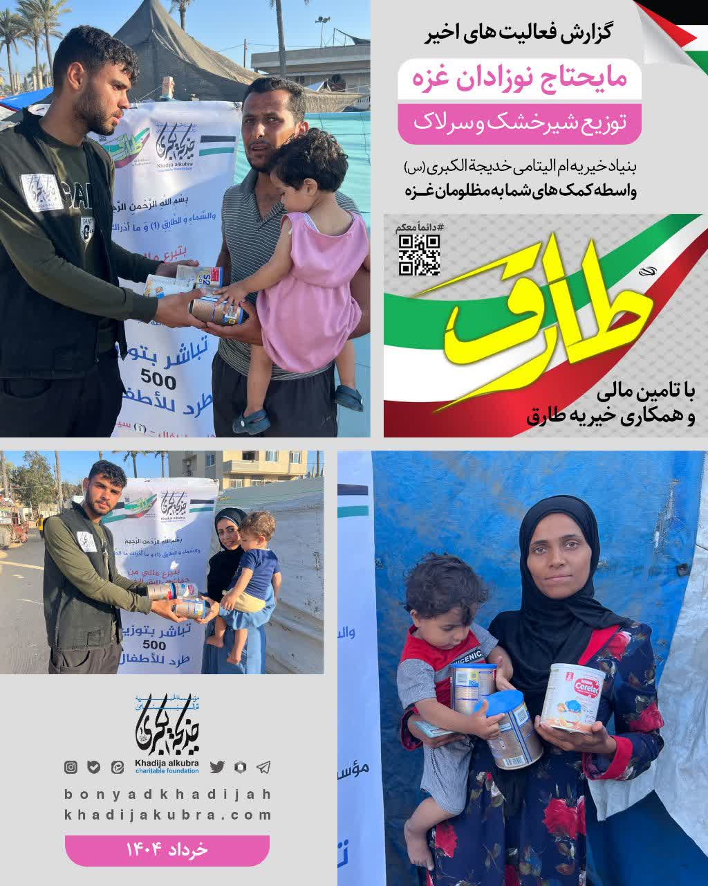 تهیه و توزیع ۵۰۰ بسته مايحتاج نوزادان غزه با تامین مالی و همکاری خیریه طارق و بنیاد خیریه ام‌الیتامی خدیجة الکبری علیها‌السلام