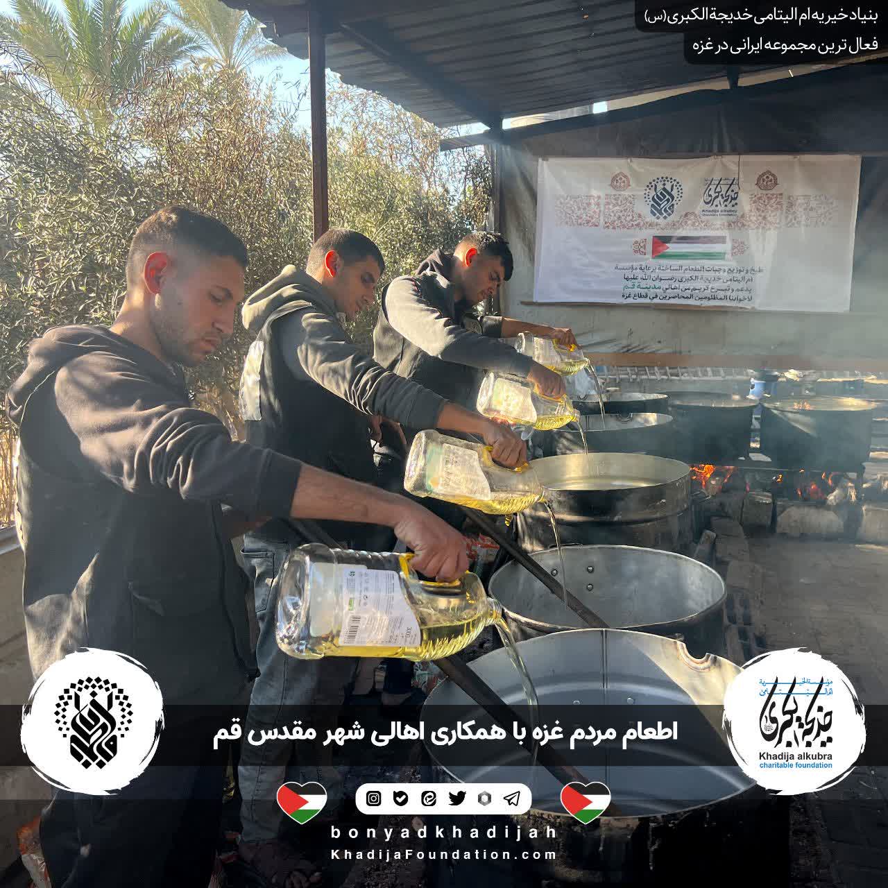 اطعام مردم مظلوم غزه با مبالغ اهدائى مردم شهر مقدس قم به بنیاد خیریه امالیتامی خدیجة الکبری علیهاالسلام انجام گرديد.