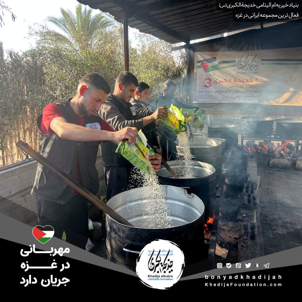 اطعام مردم مظلوم غزه توسط بنیاد خیریه ام‌الیتامی خدیجة الکبری علیها‌السلام، هر روز بدون وقفه انجام می‌گردد.