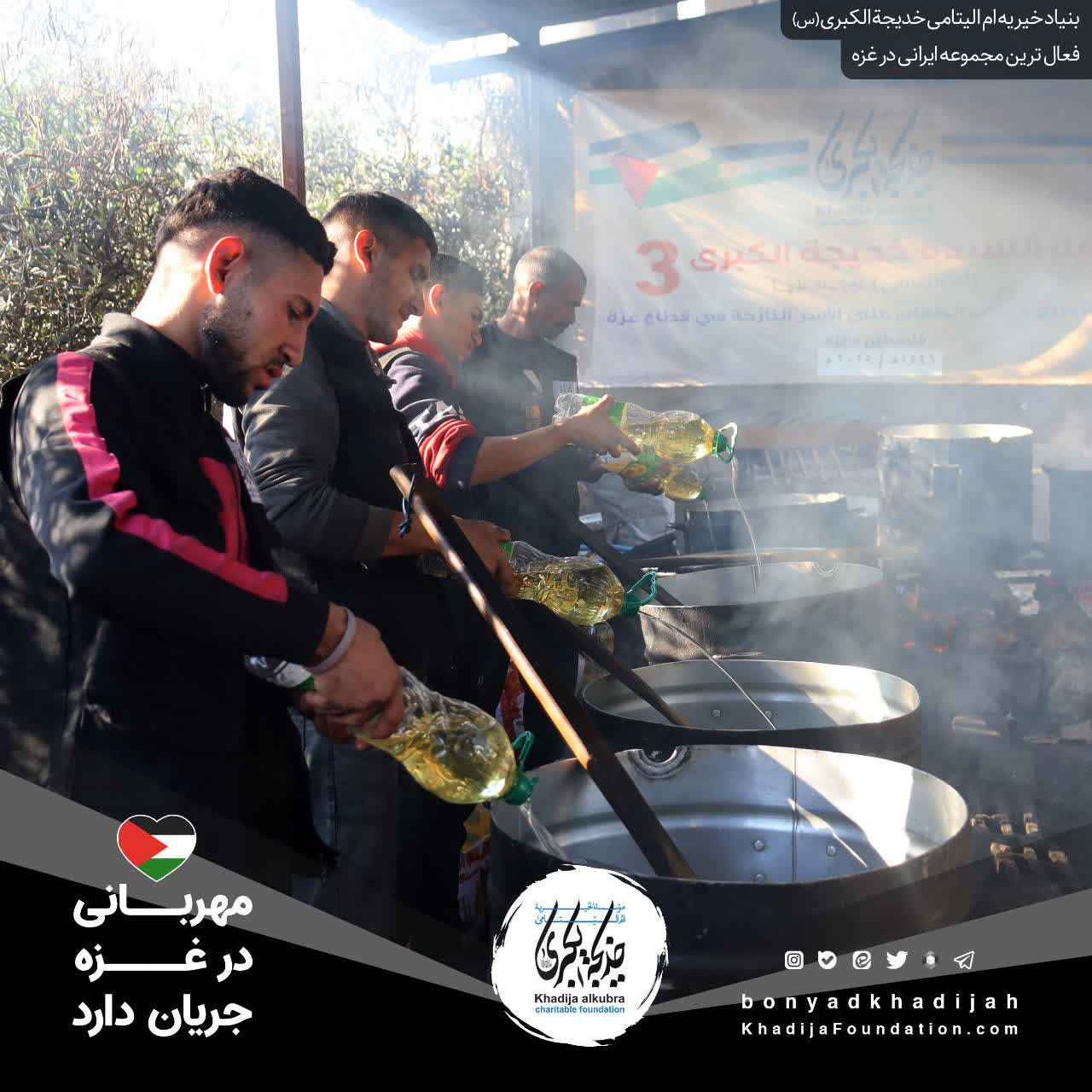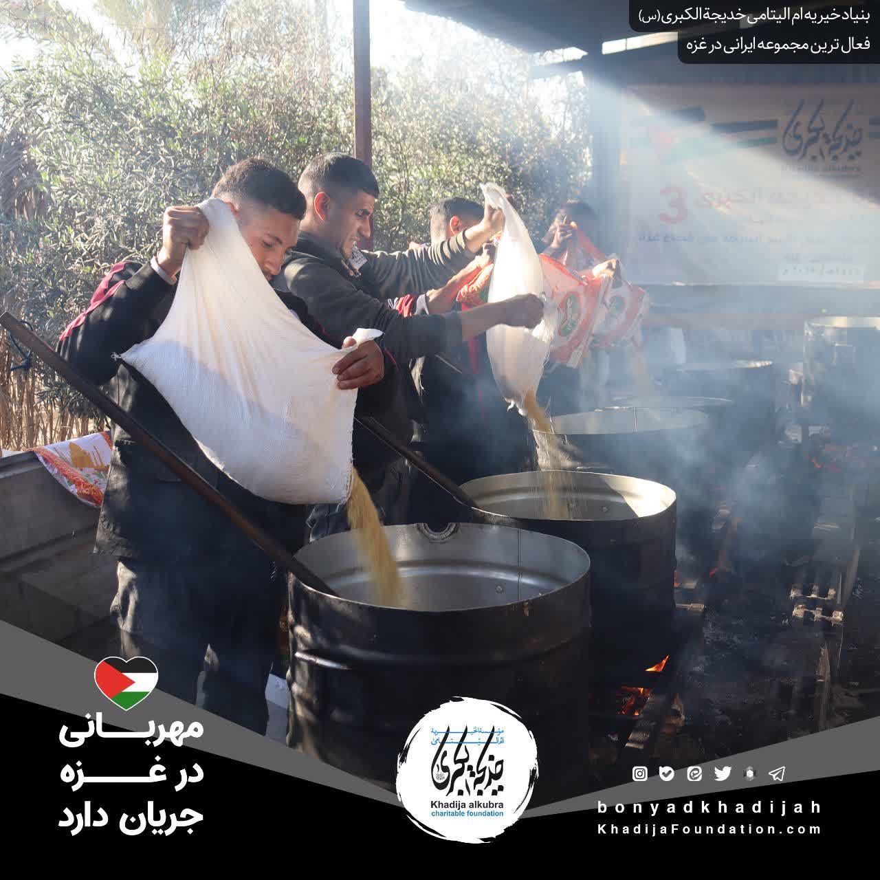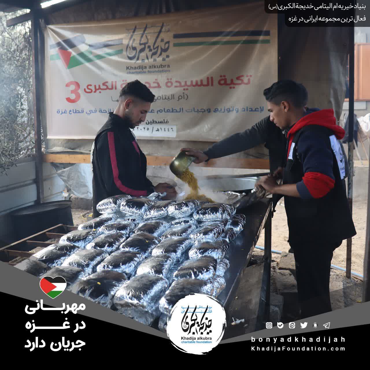اطعام مردم مظلوم غزه توسط بنیاد خیریه امالیتامی خدیجة الکبری علیهاالسلام، هر روز بدون وقفه انجام میگردد.