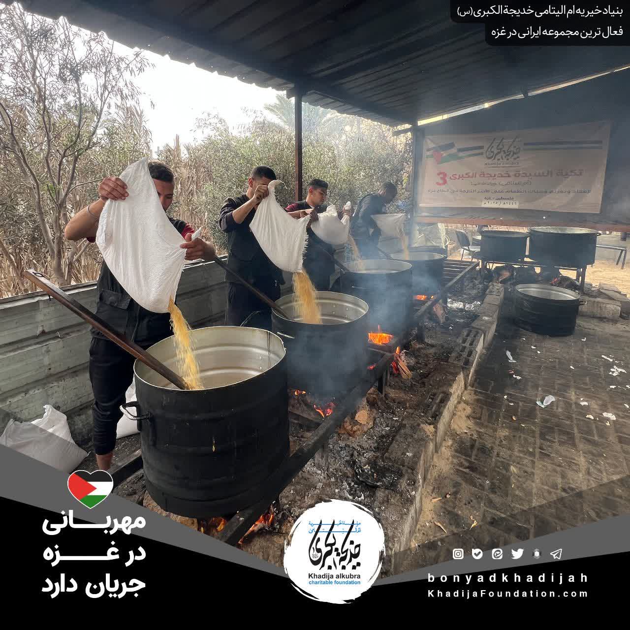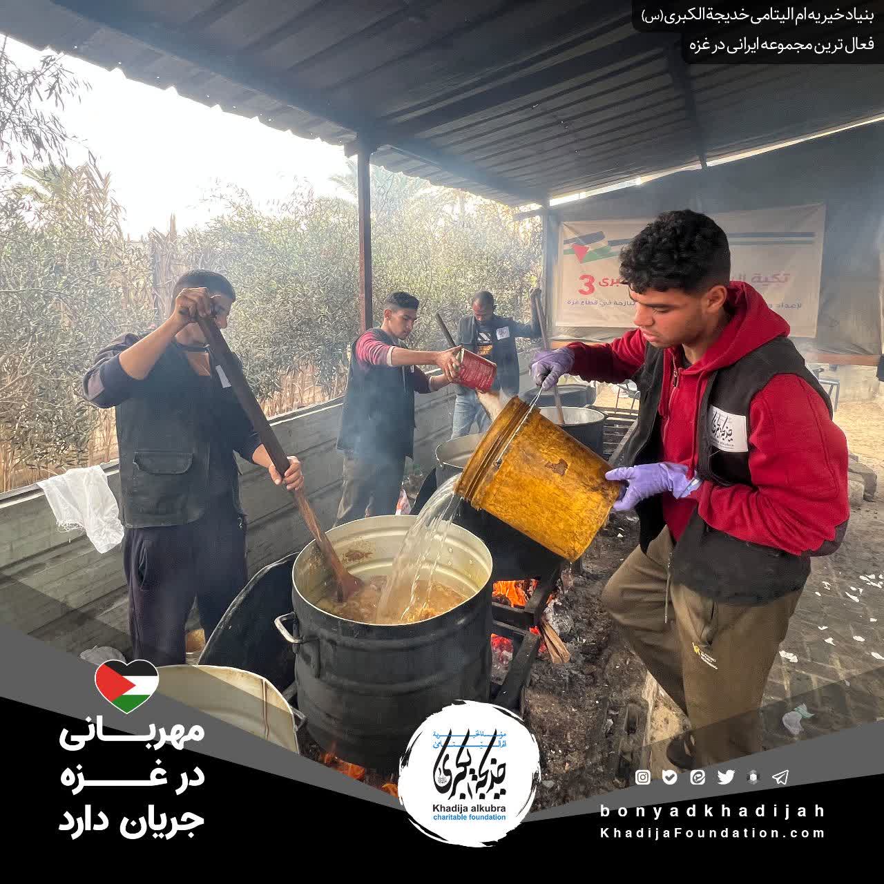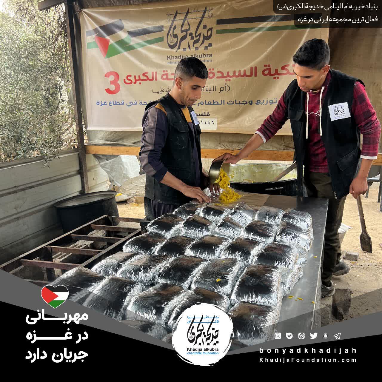 اطعام مردم مظلوم غزه توسط بنیاد خیریه ام‌الیتامی خدیجة الکبری علیها‌السلام، هر روز بدون وق