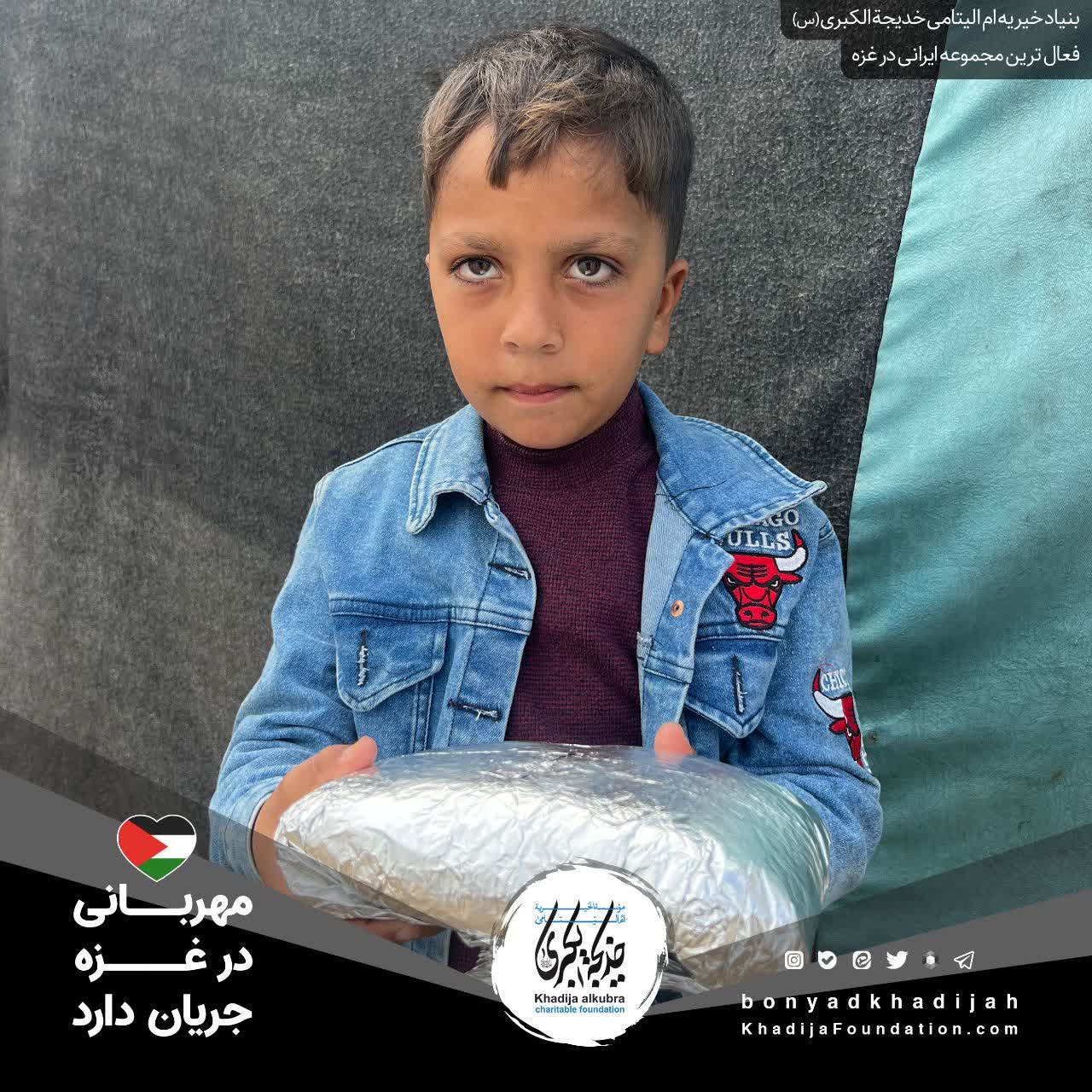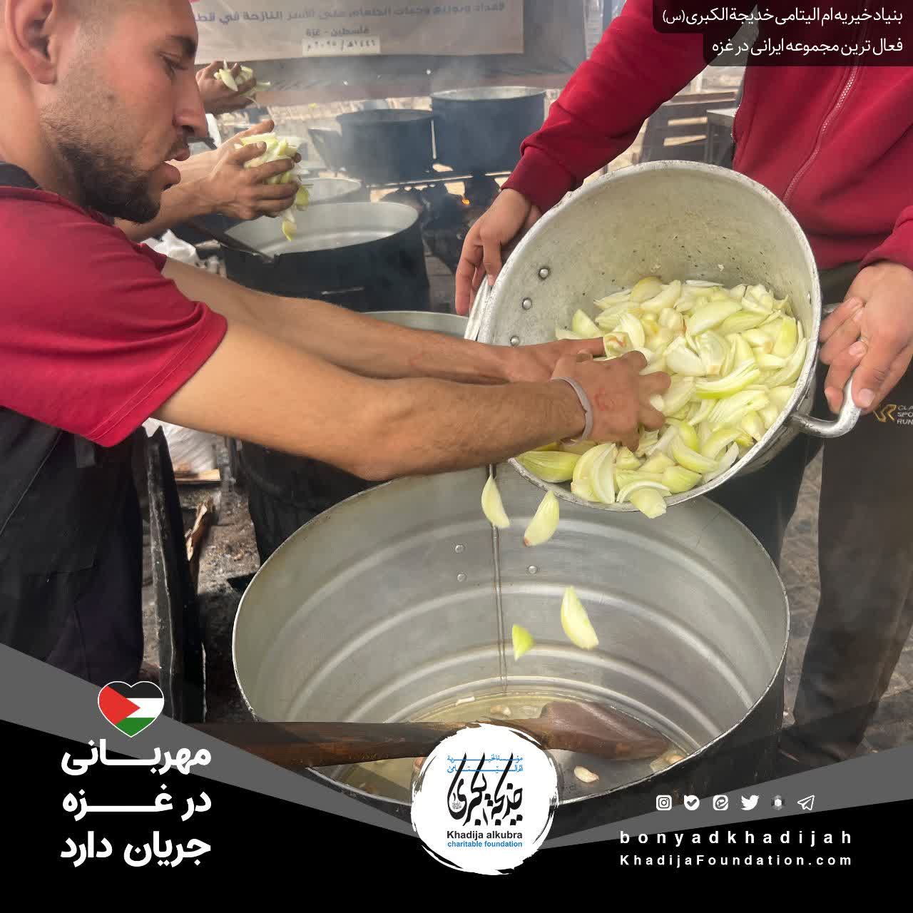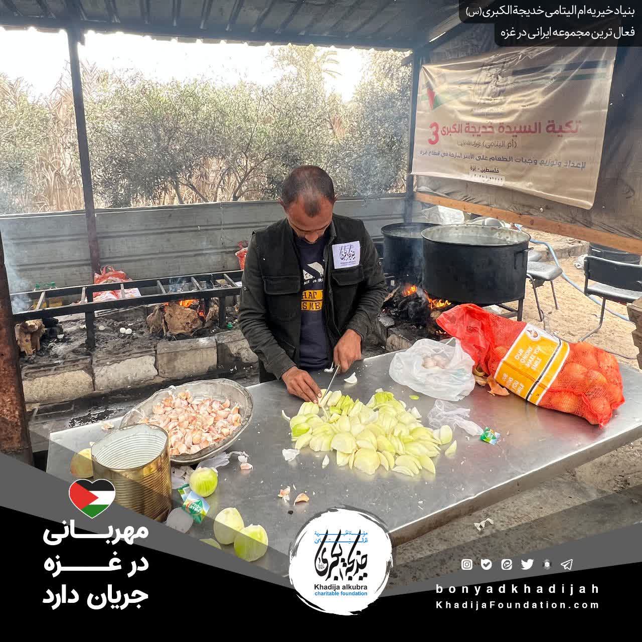 اطعام مردم مظلوم غزه توسط بنیاد خیریه ام‌الیتامی خدیجة الکبری علیها‌السلام، هر روز بدون وق