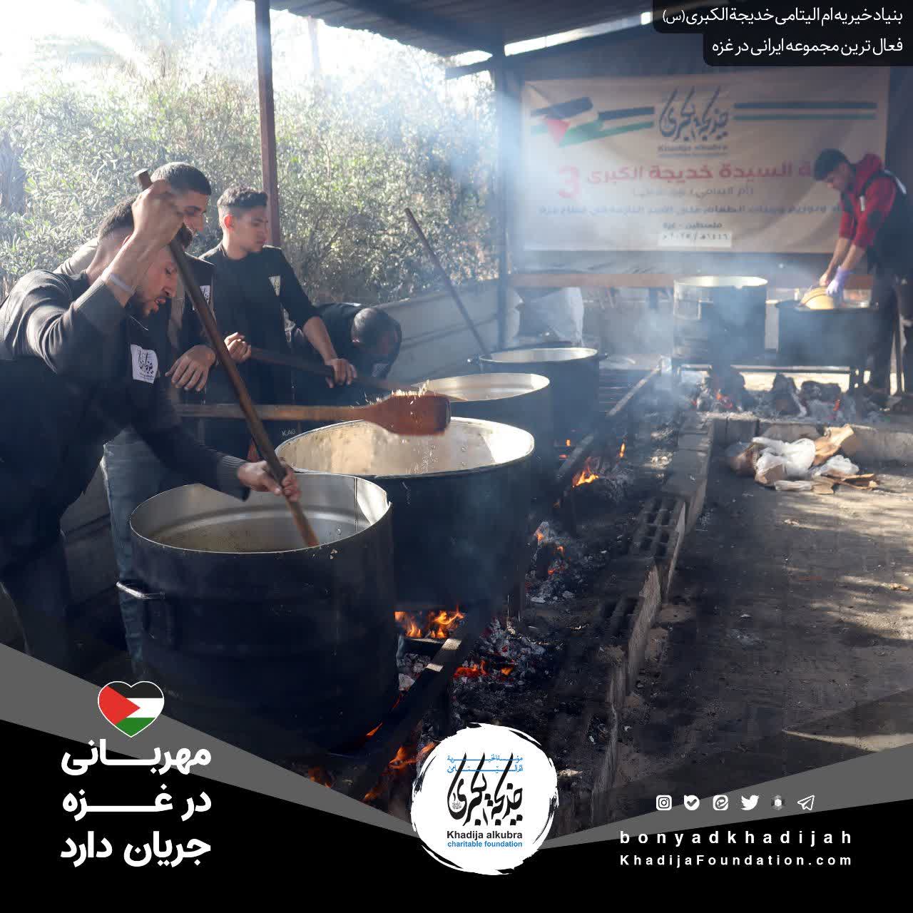 اطعام مردم مظلوم غزه توسط بنیاد خیریه امالیتامی خدیجة الکبری علیهاالسلام، هر روز بدون وقفه انجام میگردد.