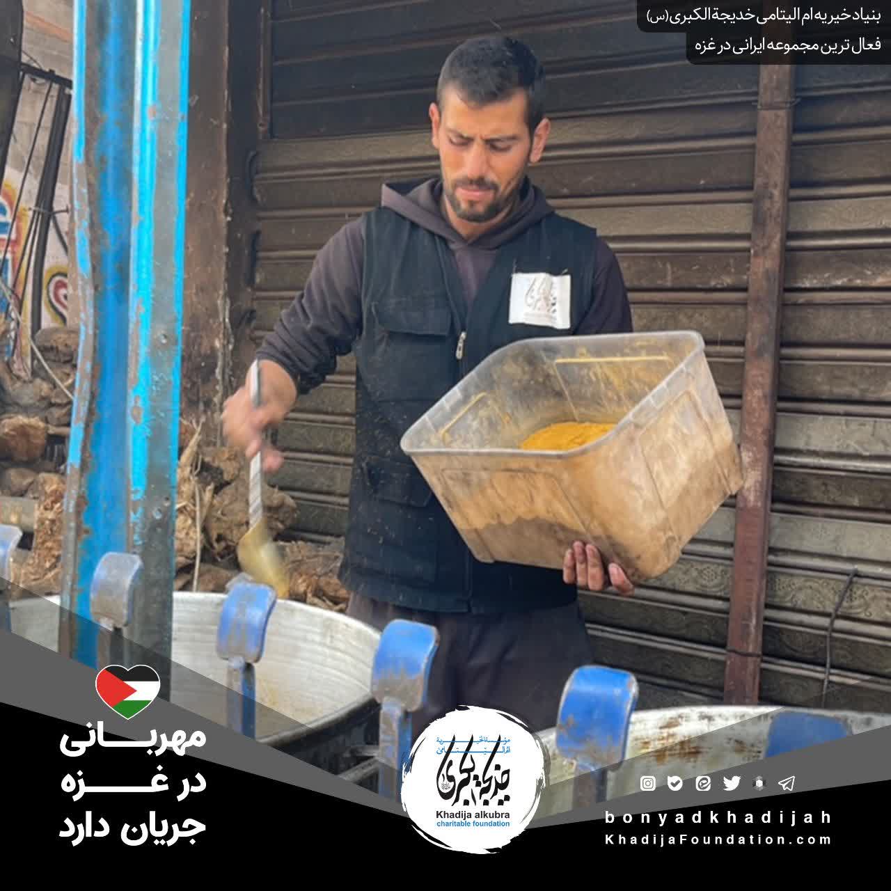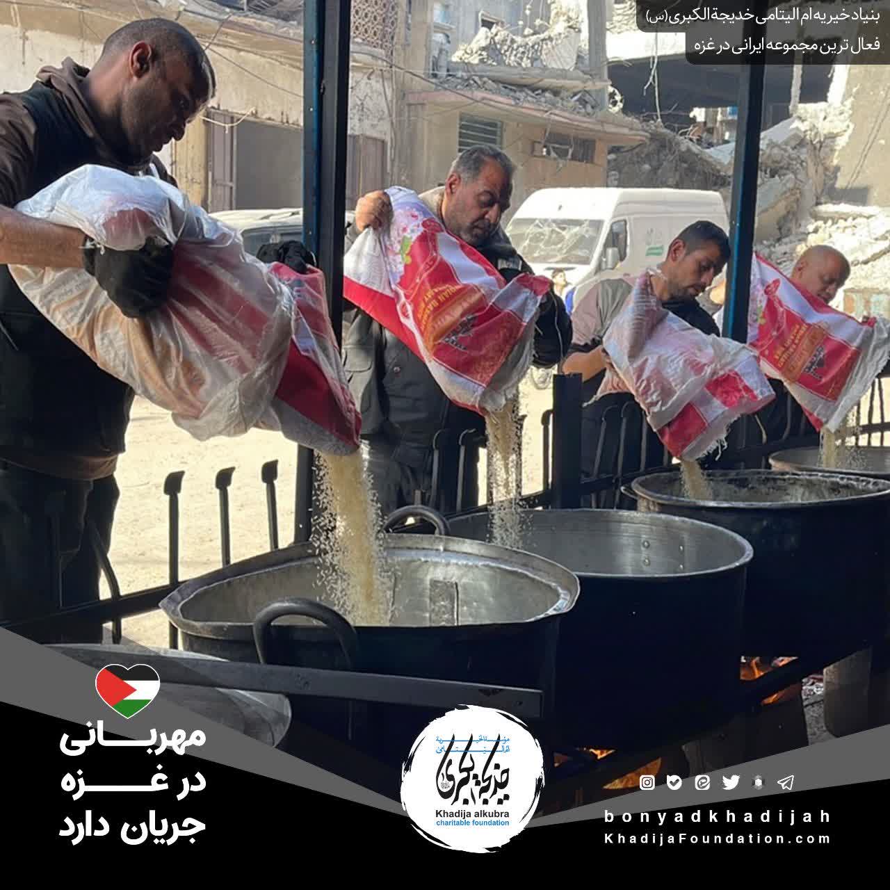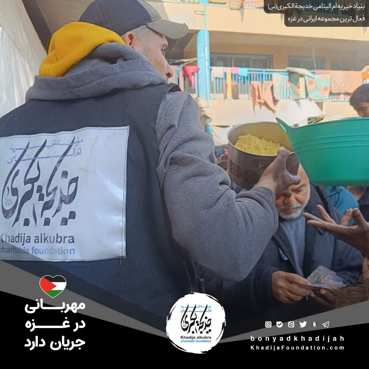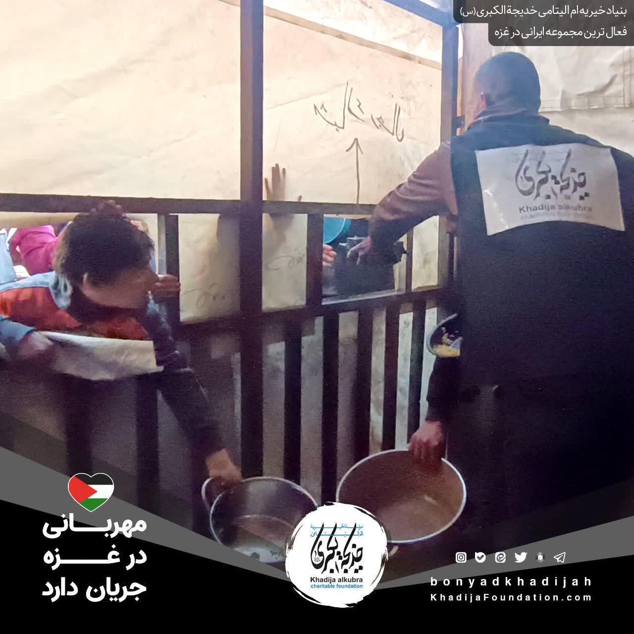 اطعام مردم مظلوم غزه توسط بنیاد خیریه امالیتامی خدیجة الکبری علیهاالسلام، هر روز بدون وقفه انجام میگردد.