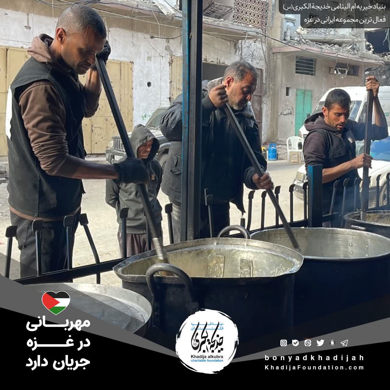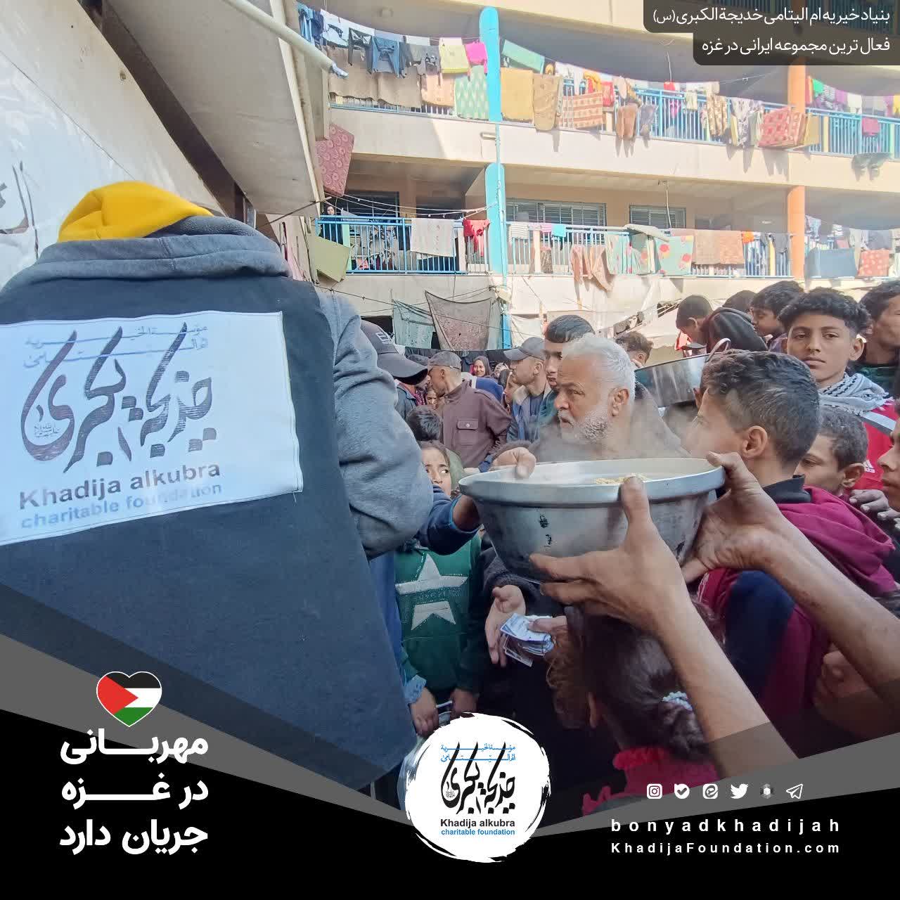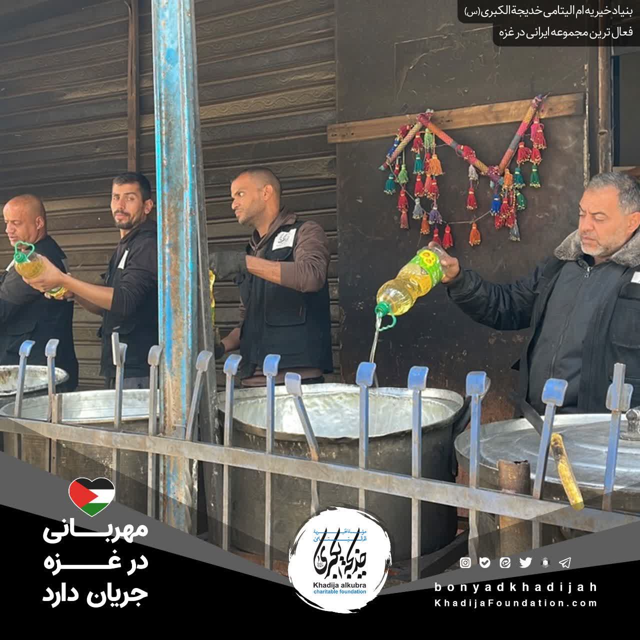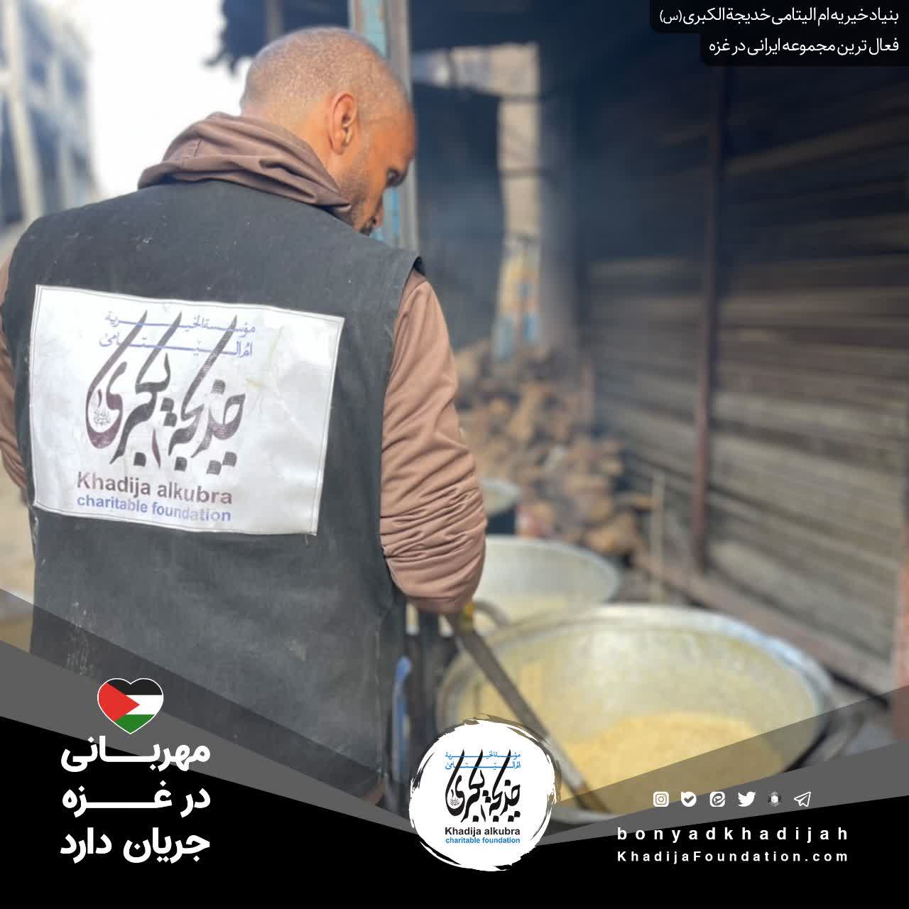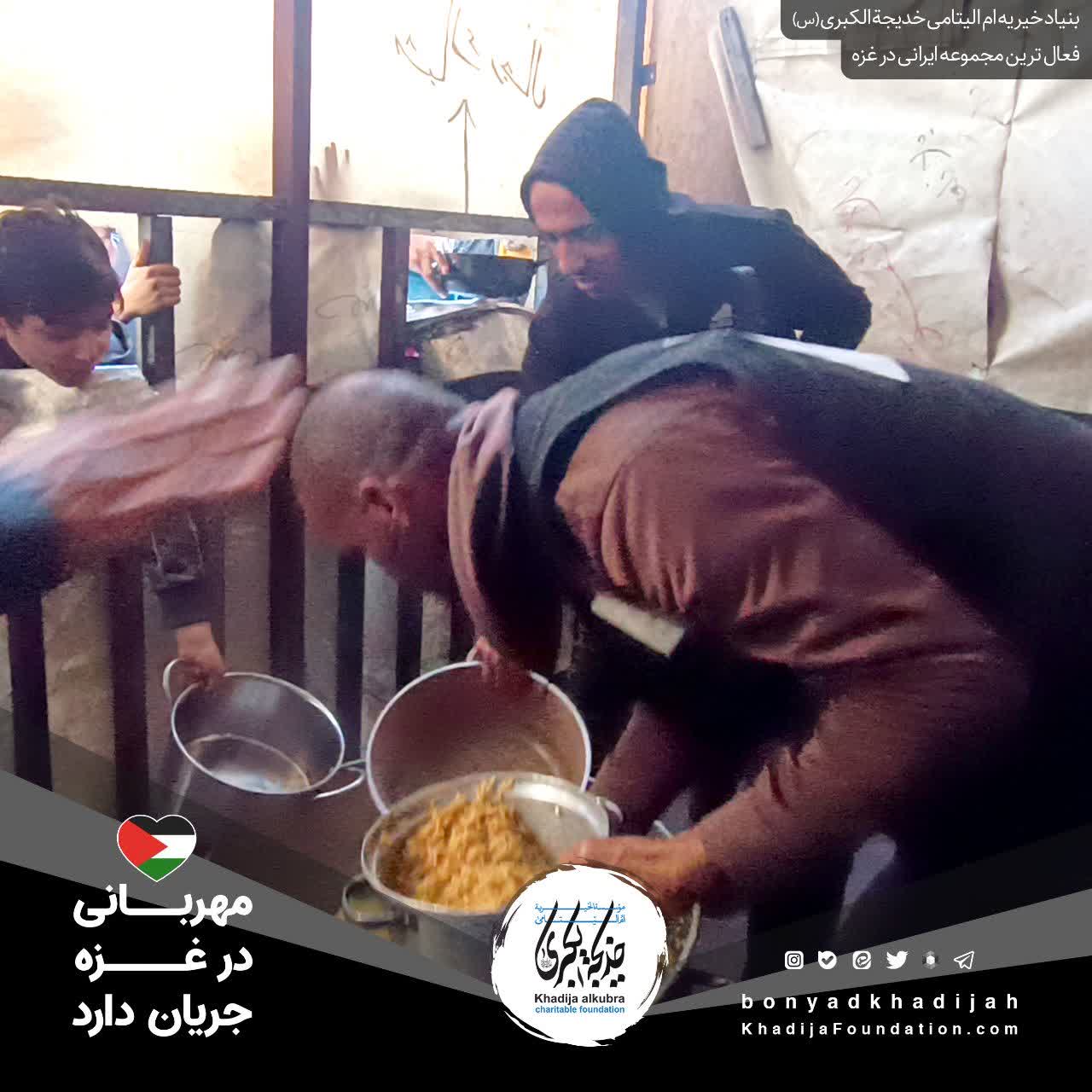 اطعام مردم مظلوم غزه توسط بنیاد خیریه امالیتامی خدیجة الکبری علیهاالسلام، هر روز بدون وقفه انجام میگردد.