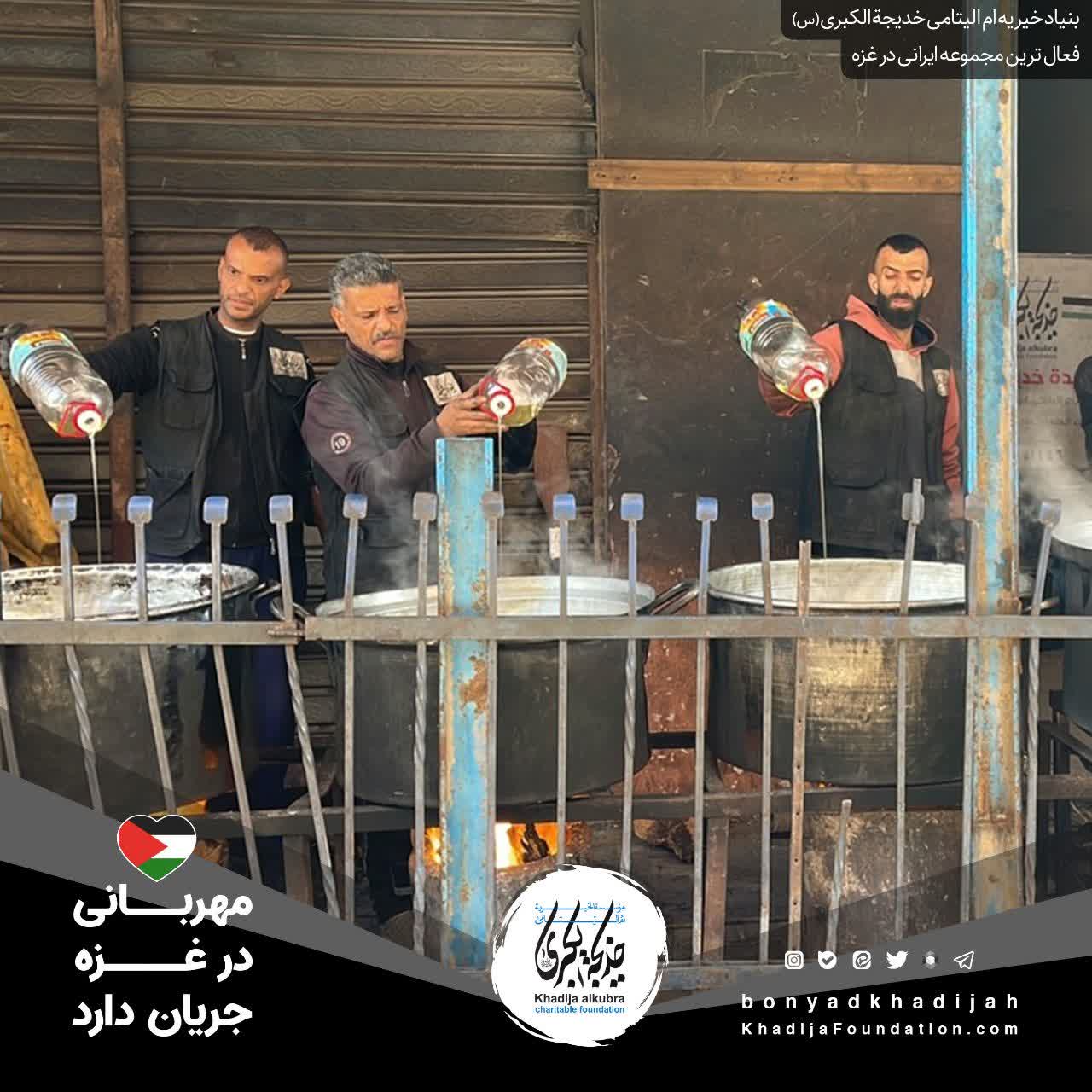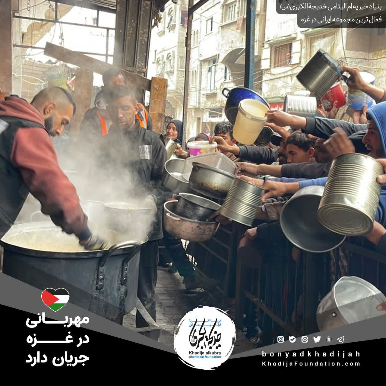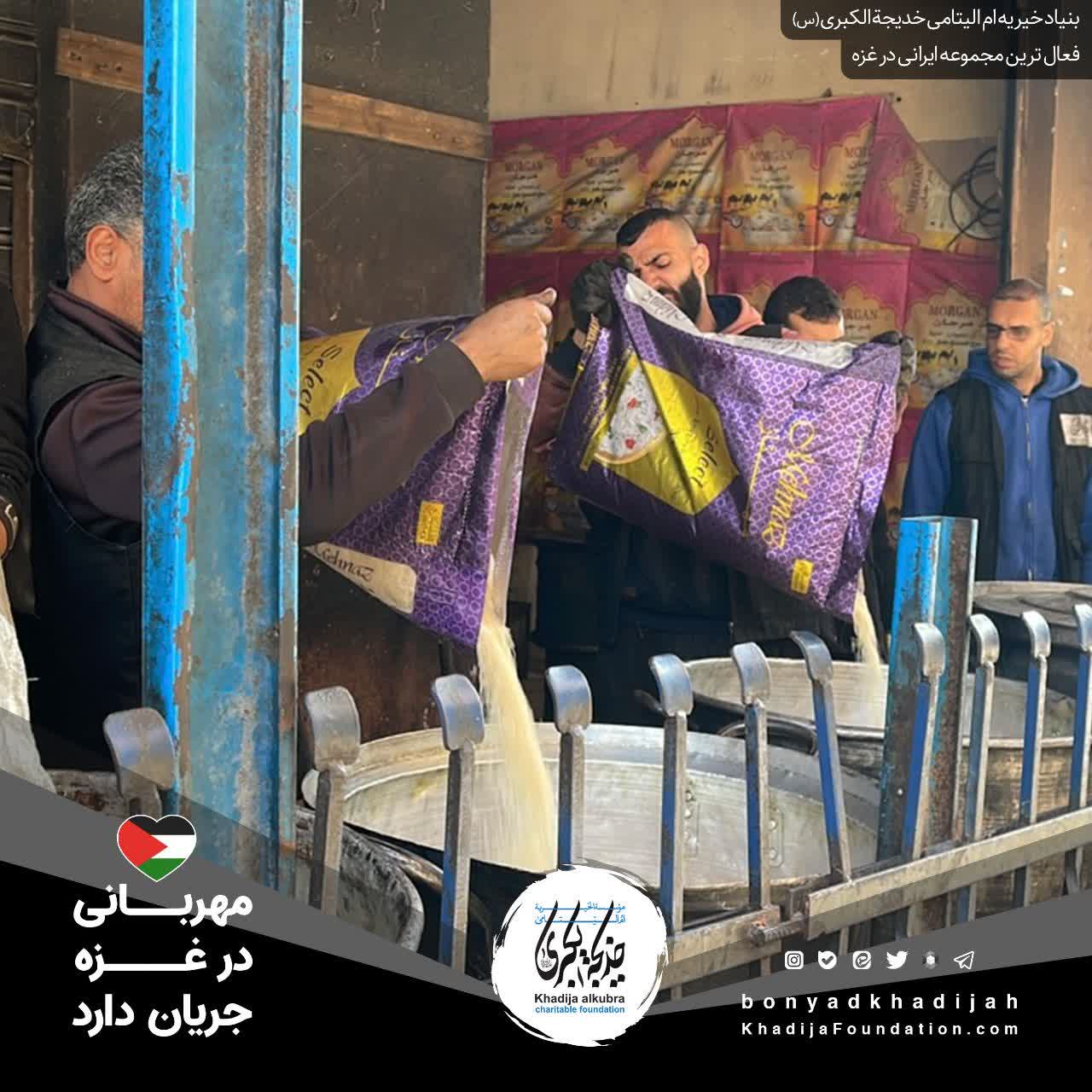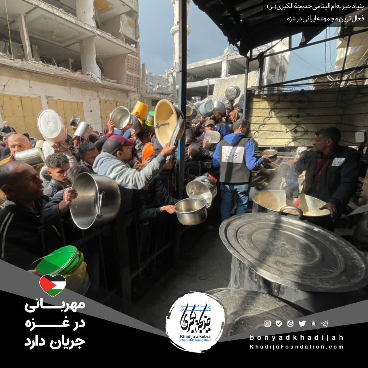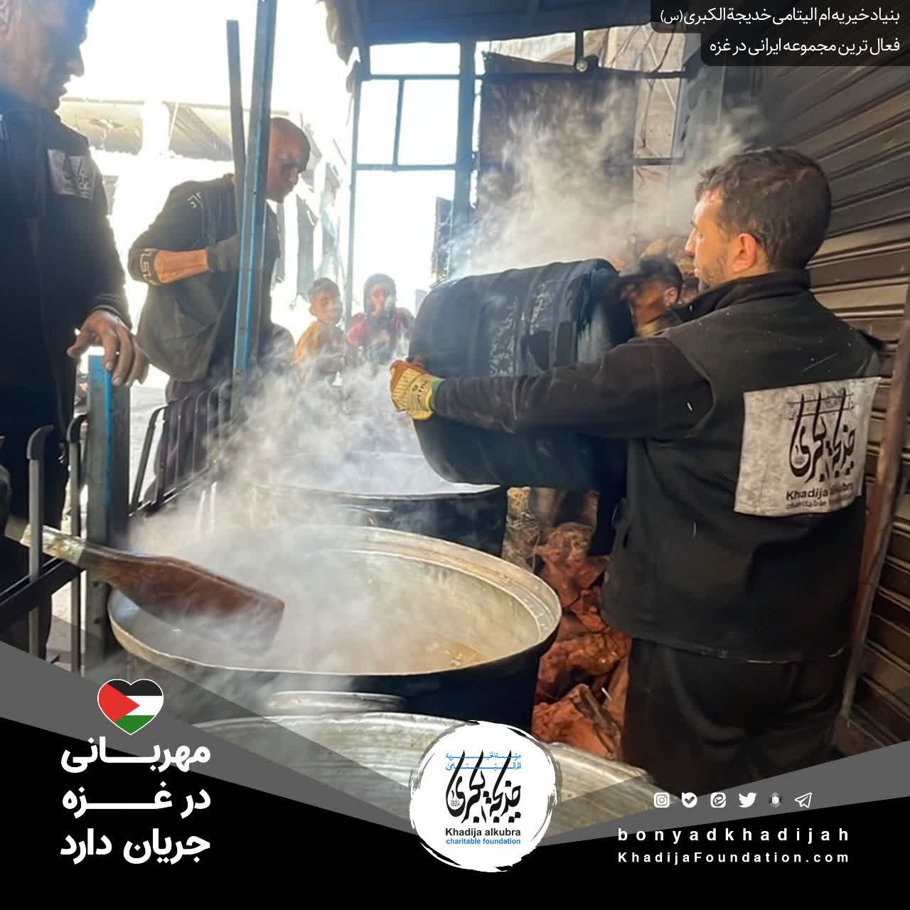 اطعام مردم مظلوم غزه توسط بنیاد خیریه امالیتامی خدیجة الکبری علیهاالسلام، هر روز بدون وقفه انجام میگردد.