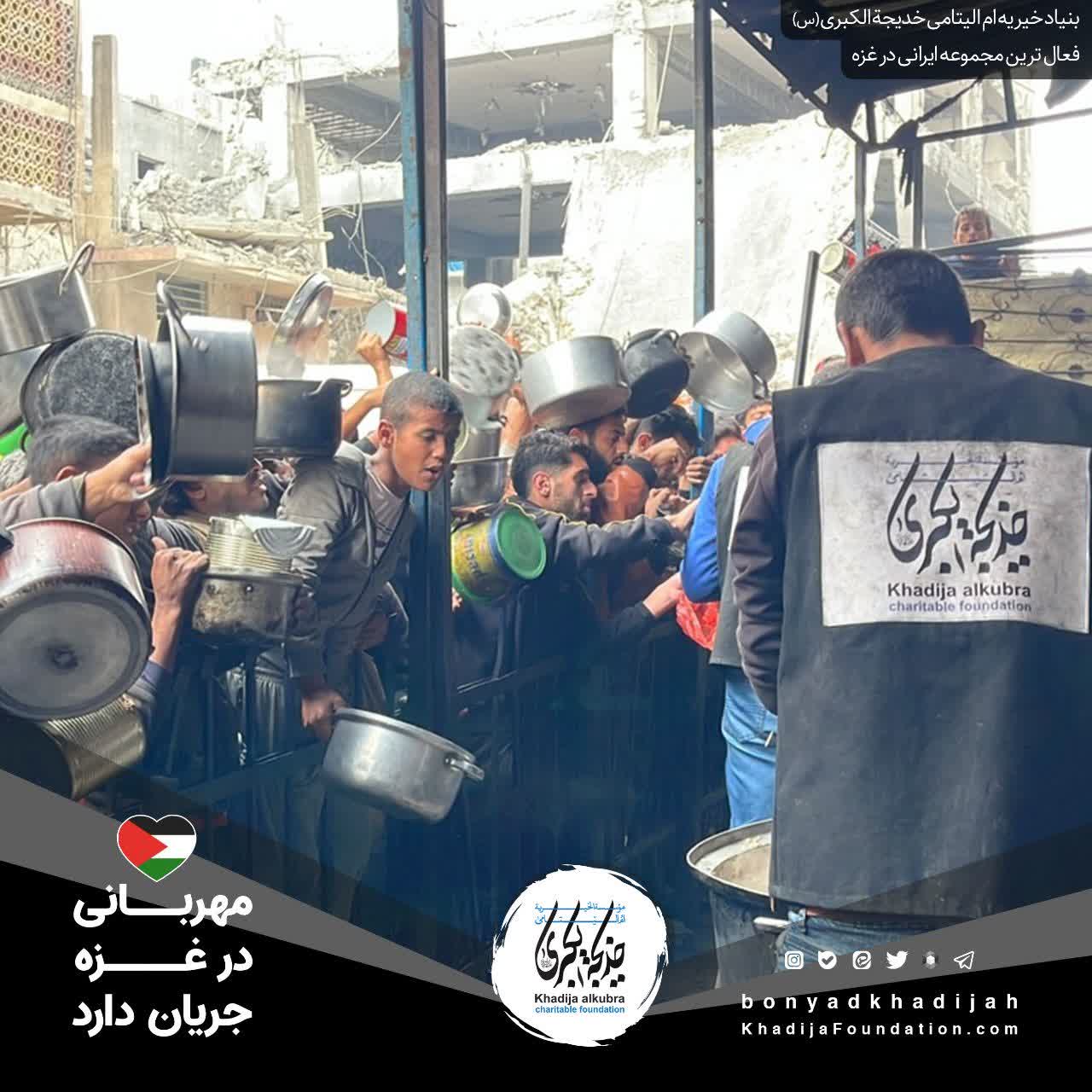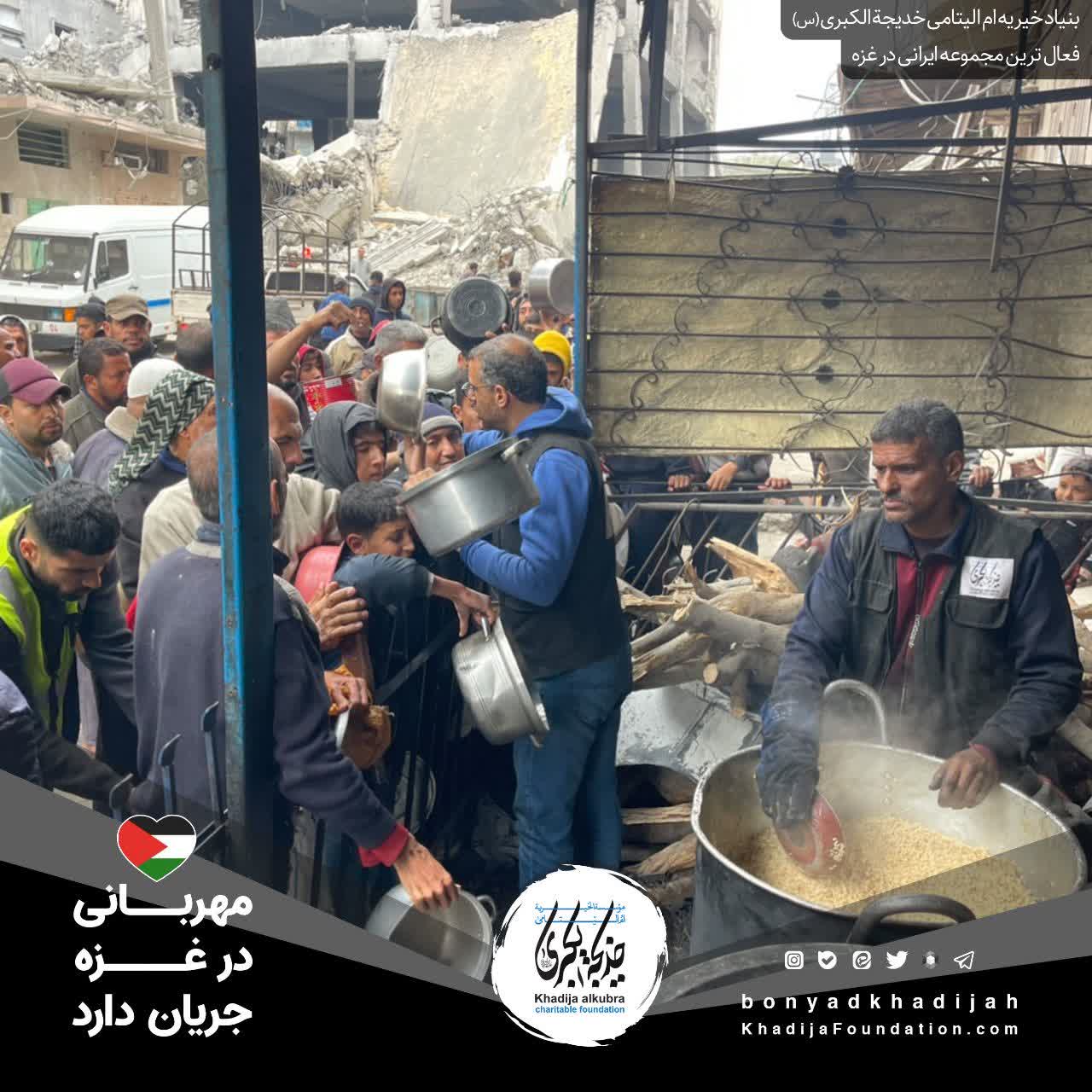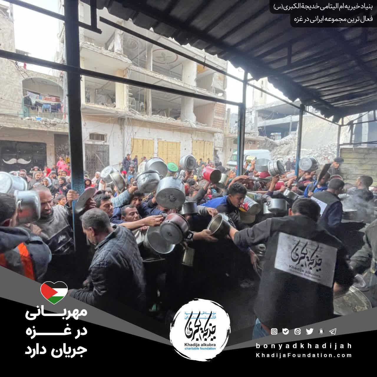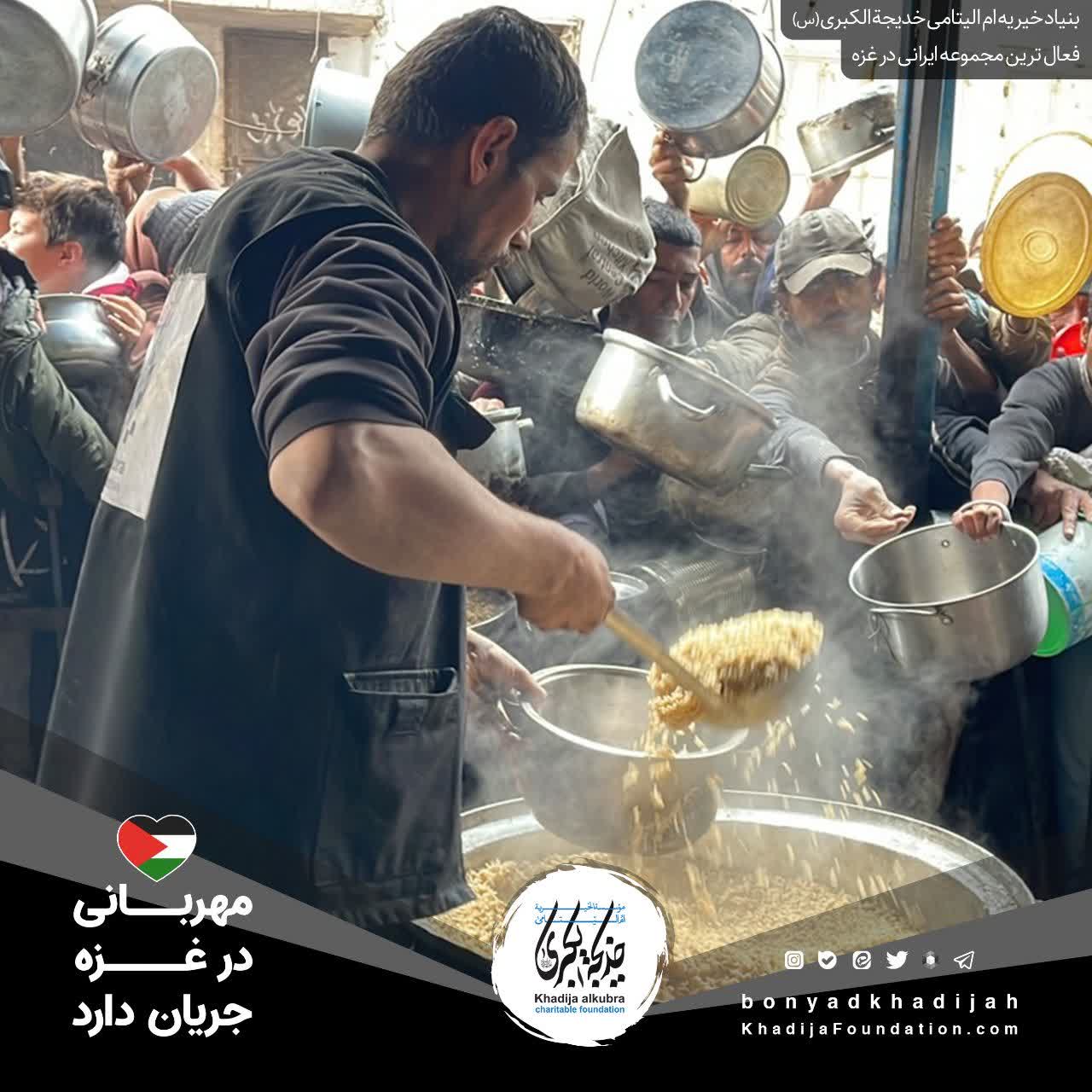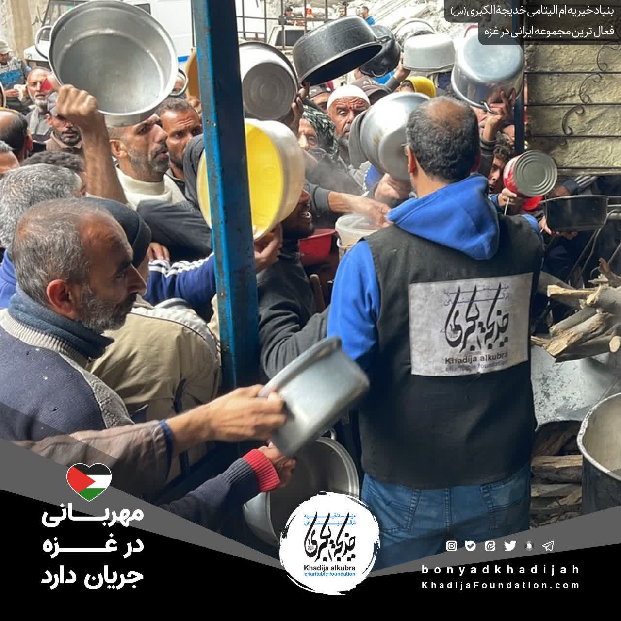 اطعام مردم مظلوم غزه توسط بنیاد خیریه امالیتامی خدیجة الکبری علیهاالسلام، هر روز بدون وقفه انجام میگردد.