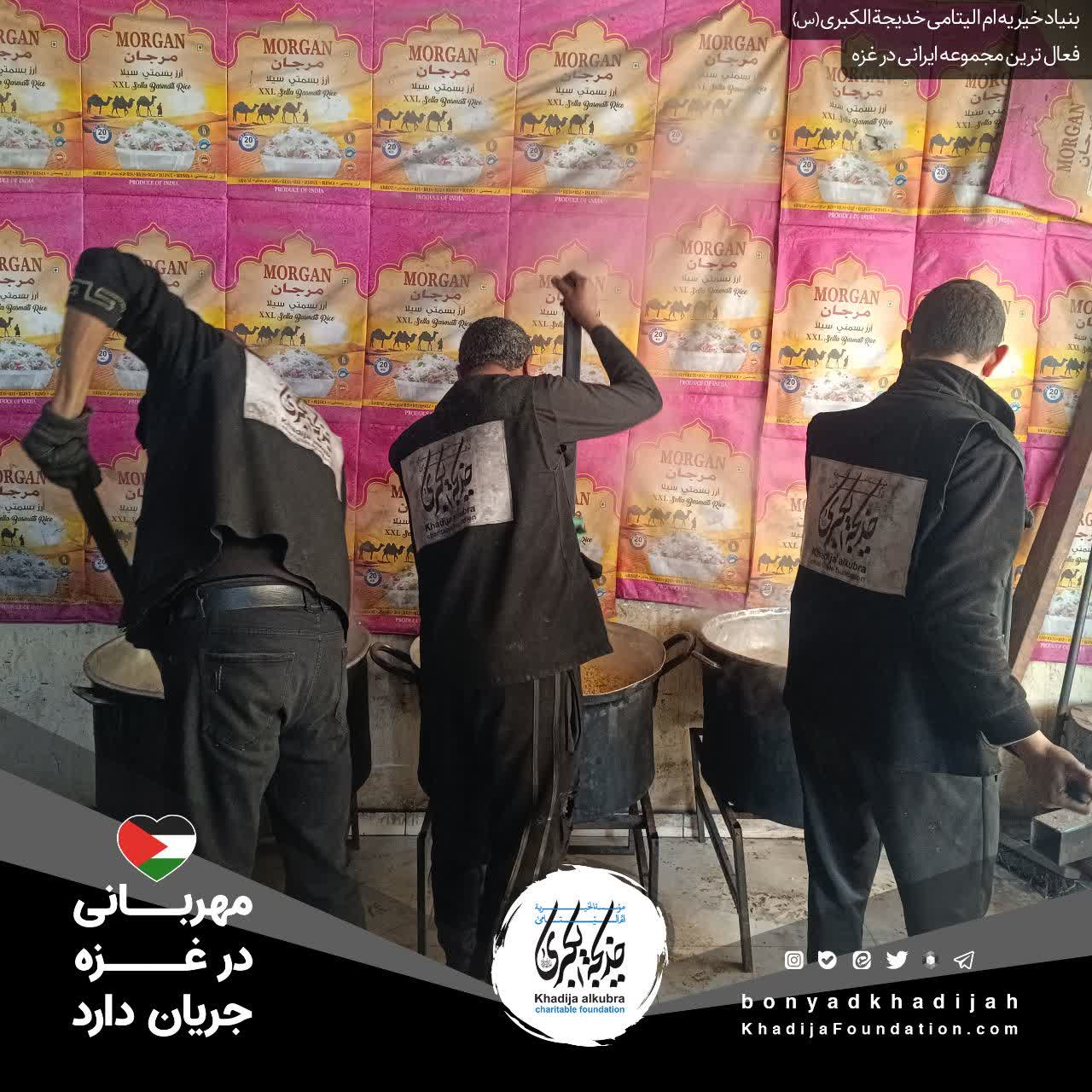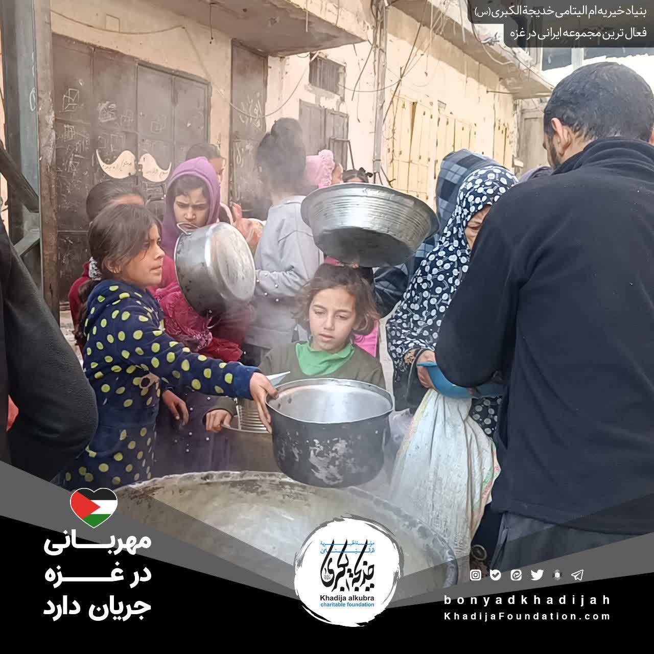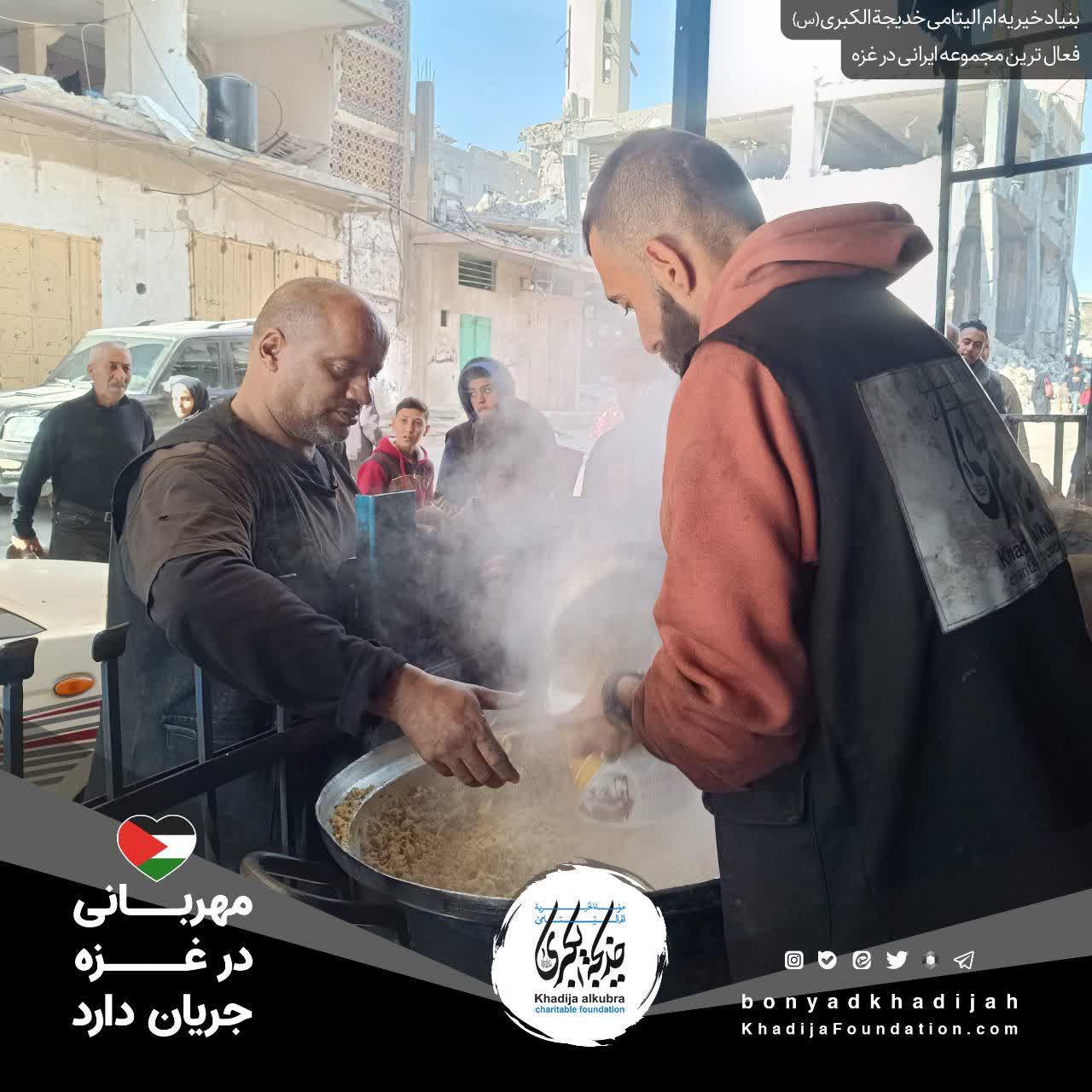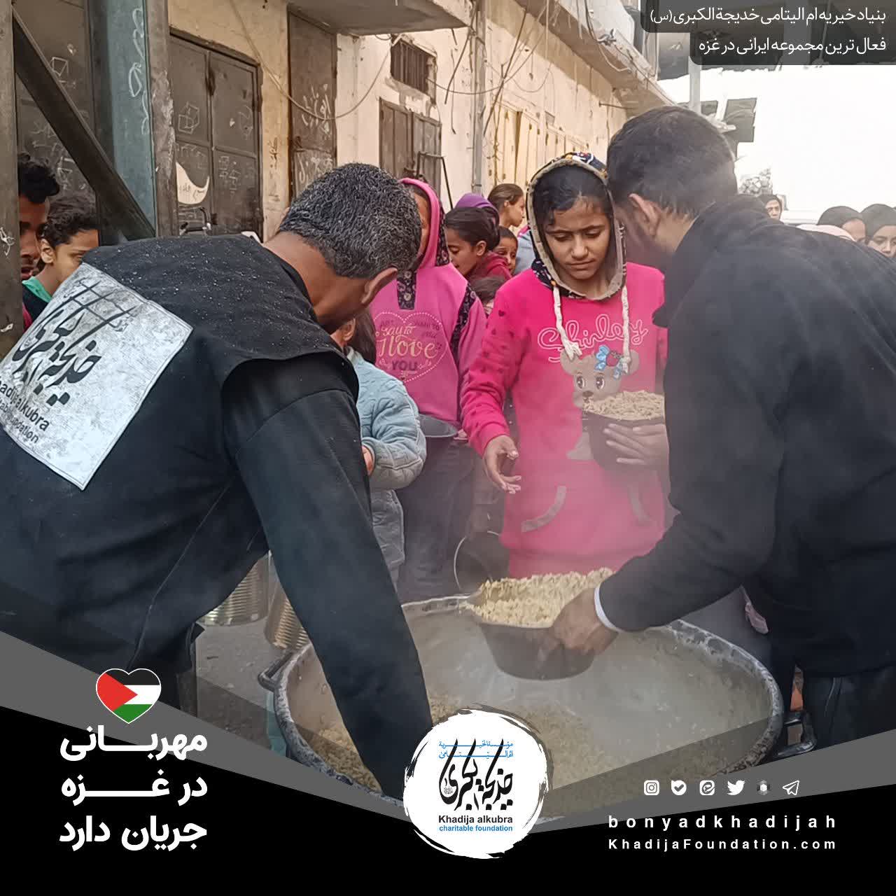 اطعام مردم مظلوم غزه توسط بنیاد خیریه امالیتامی خدیجة الکبری علیهاالسلام، هر روز بدون وقفه انجام میگردد.