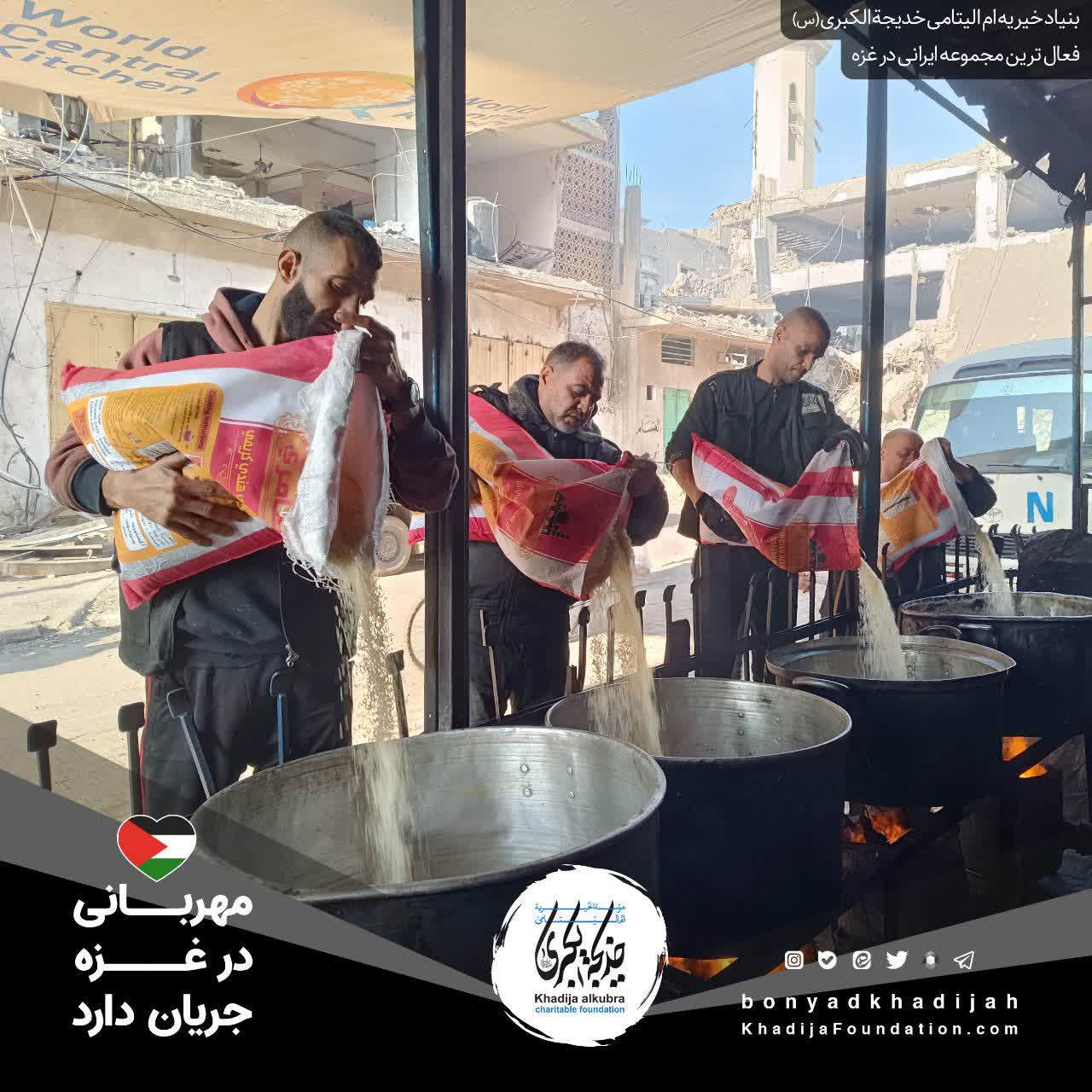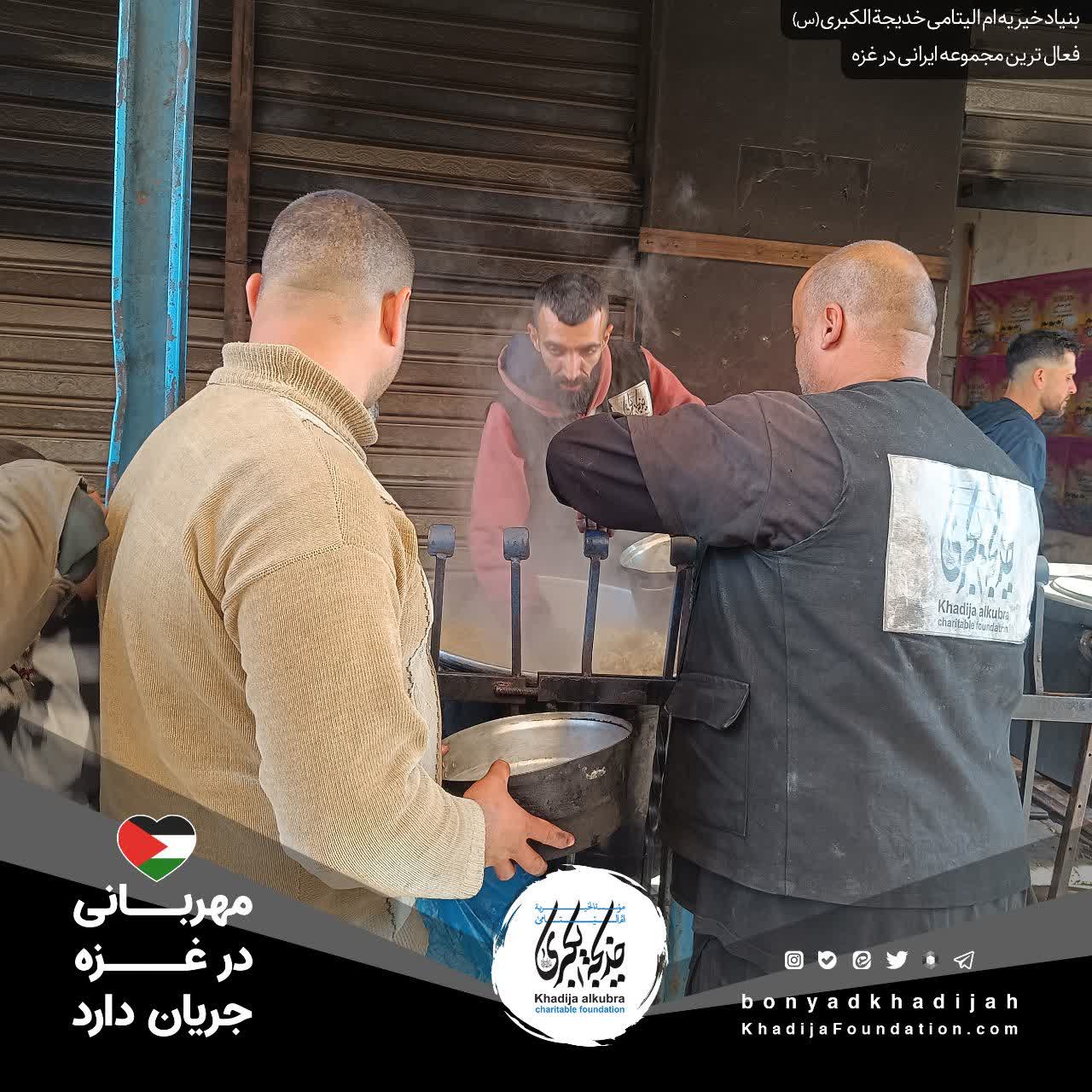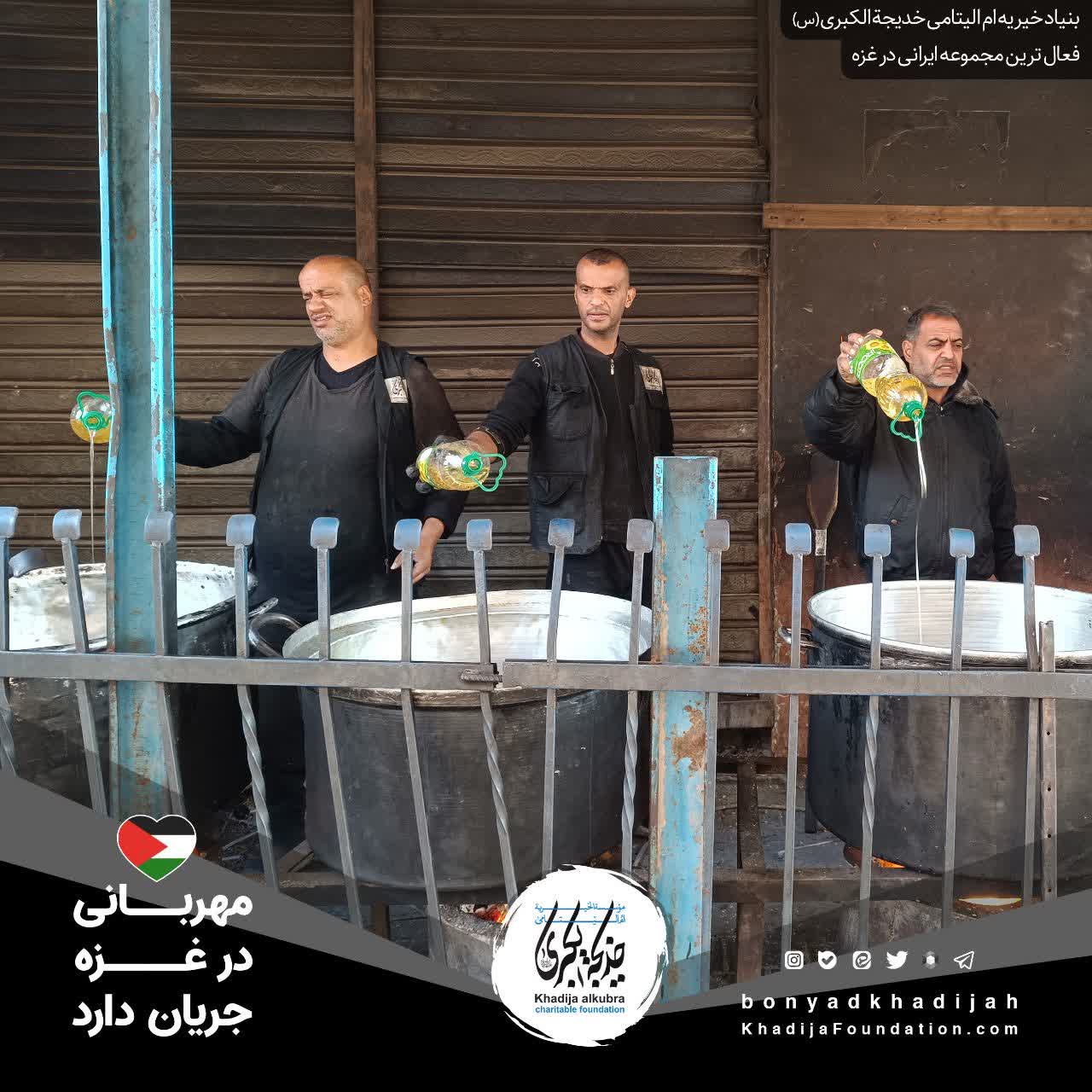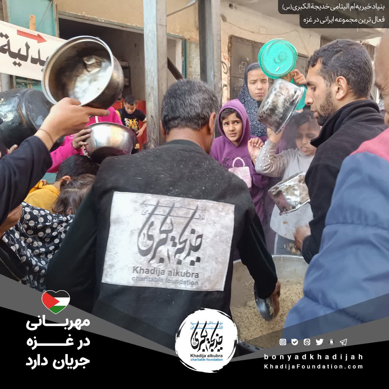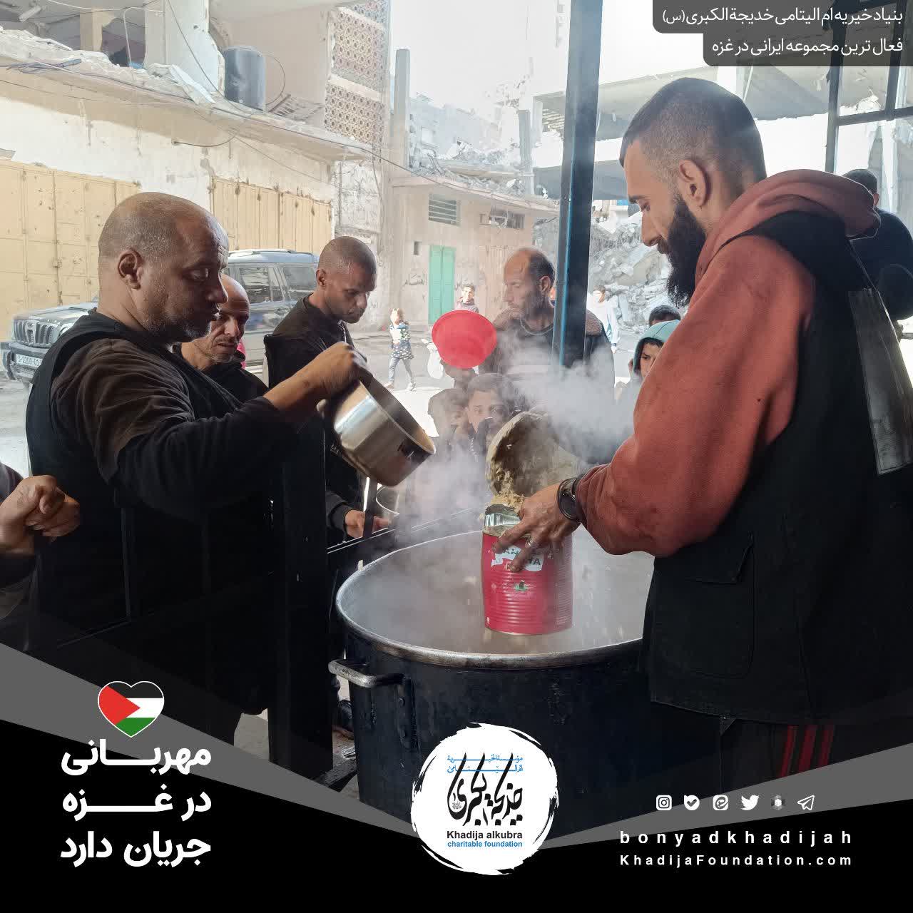 اطعام مردم مظلوم غزه توسط بنیاد خیریه امالیتامی خدیجة الکبری علیهاالسلام، هر روز بدون وقفه انجام میگردد.
