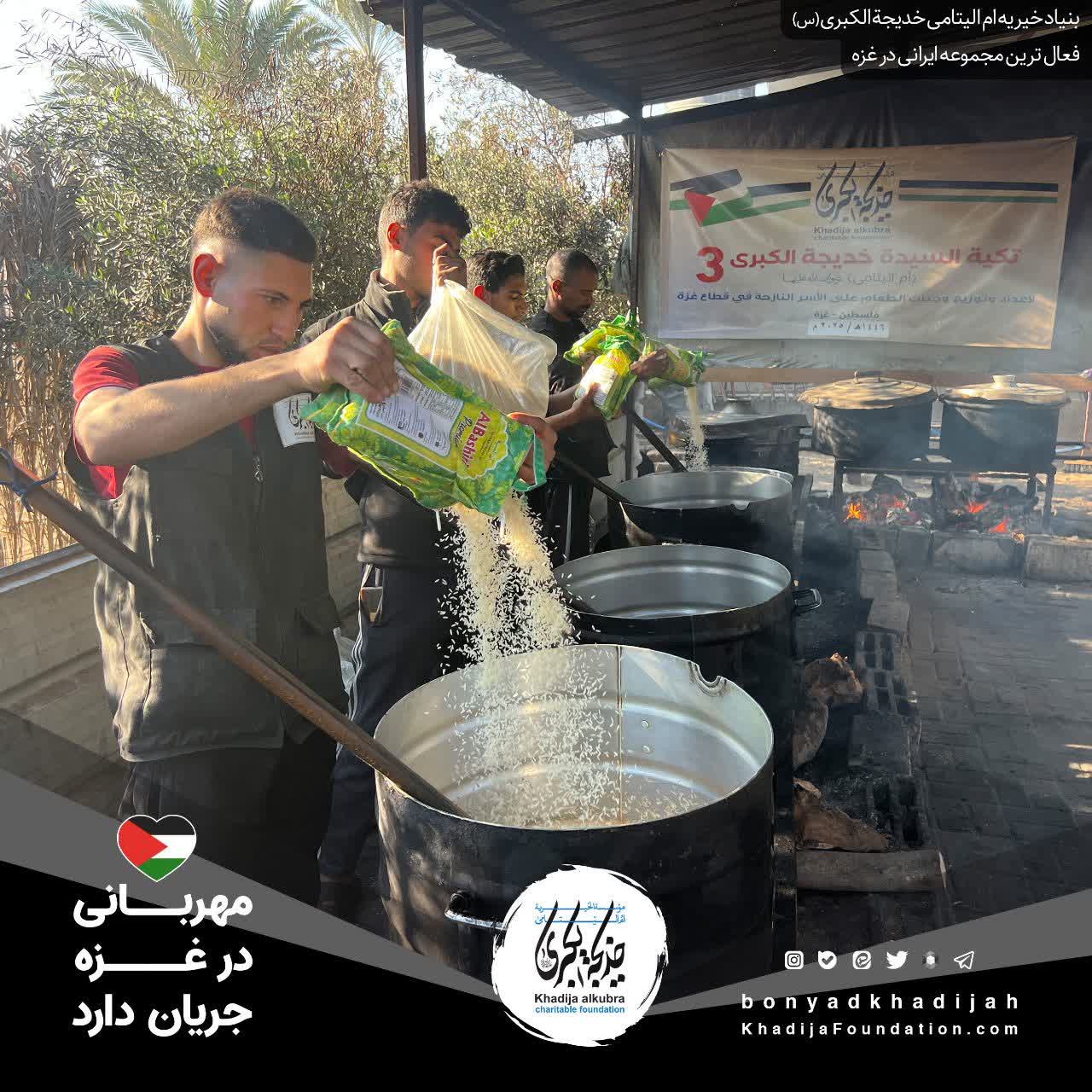 اطعام مردم مظلوم غزه توسط بنیاد خیریه ام‌الیتامی خدیجة الکبری علیها‌السلام، هر روز بدون وقفه انجام می‌گردد.