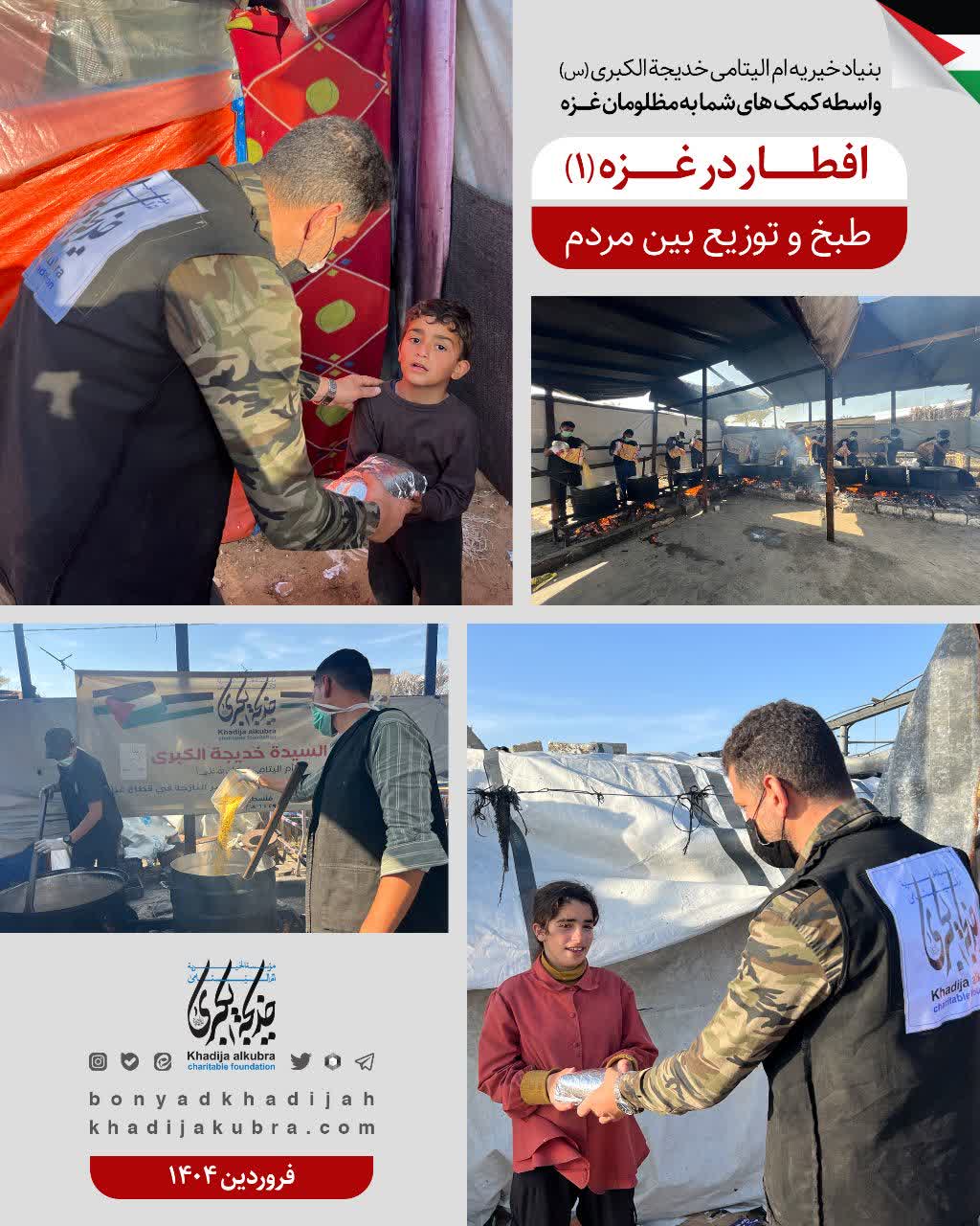 اطعام (غذای گرم) و توزیع آب سالم توسط بنیاد خیریه ام‌الیتامی خدیجة الکبری علیها‌السلام در غزه در حال انجام است.