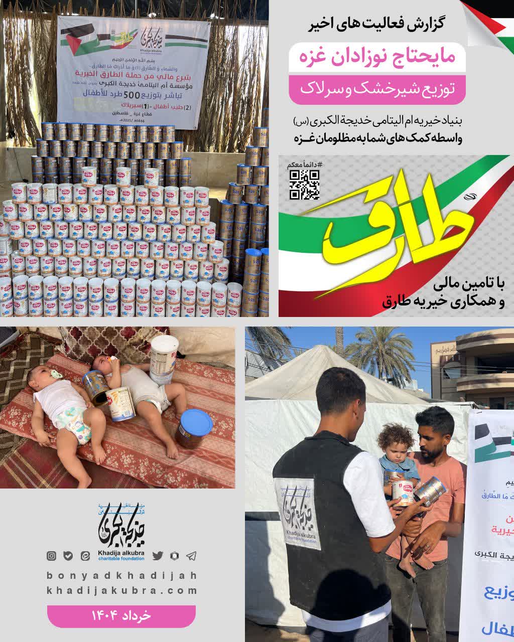 تهیه و توزیع ۵۰۰ بسته مايحتاج نوزادان غزه با تامین مالی و همکاری خیریه طارق و بنیاد خیریه ام‌الیتامی خدیجة الکبری علیها‌السلام