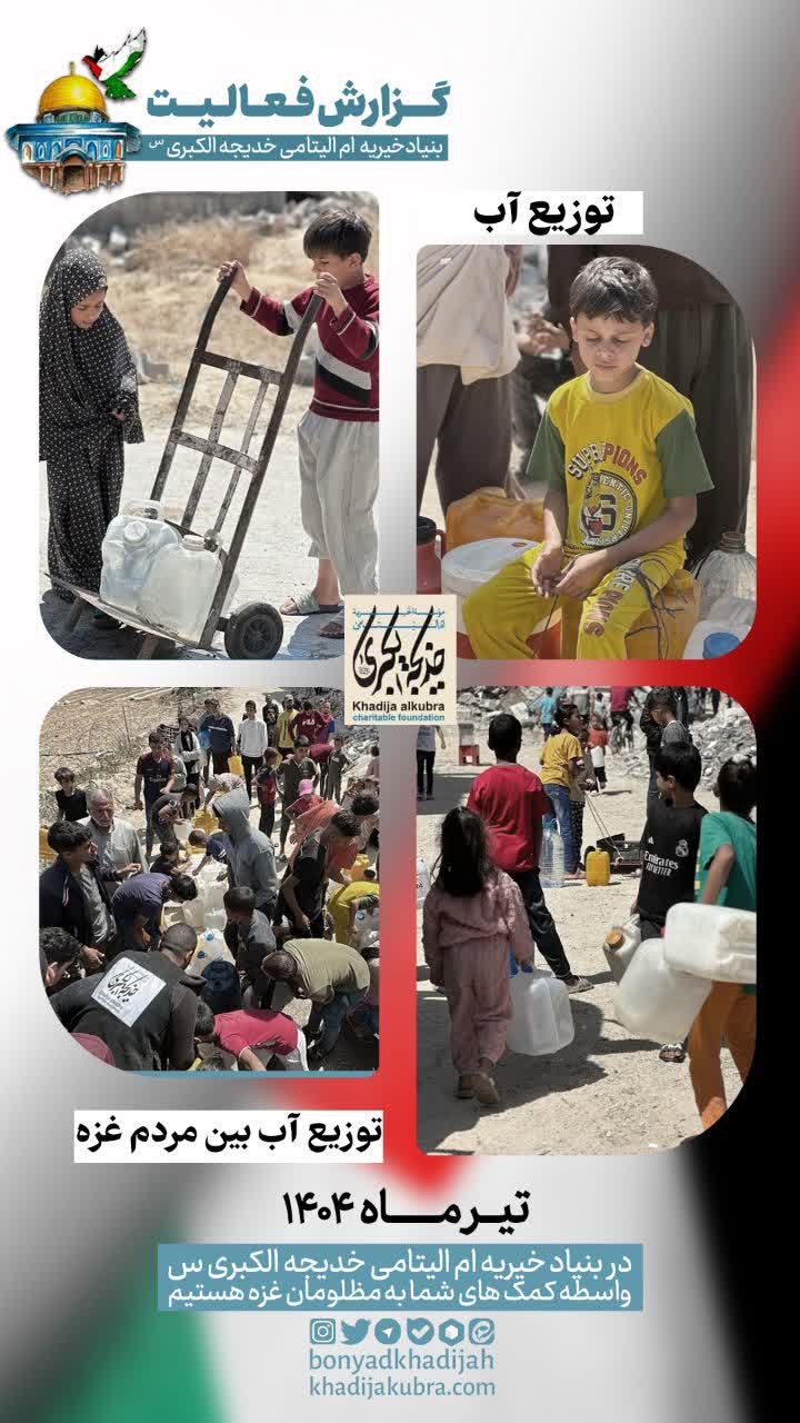 اطعام (غذای گرم)، توزیع آب سالم، بسته سبزیجات و نان توسط بنیاد خیریه امالیتامی خدیجة الکبری علیهاالسلام در غزه در حال انجام است.