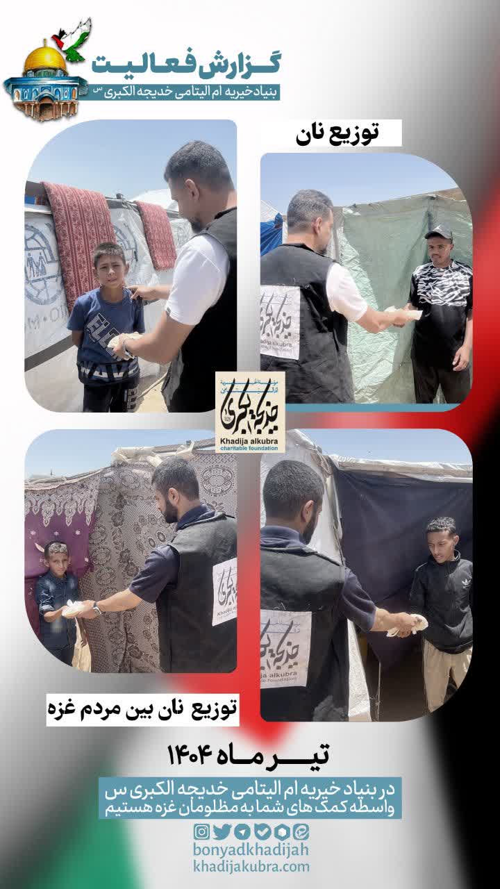 اطعام (غذای گرم)، توزیع آب سالم، بسته سبزیجات و نان توسط بنیاد خیریه ام‌الیتامی خدیجة الکبری علیها‌السلام در غزه در حال انجام است.