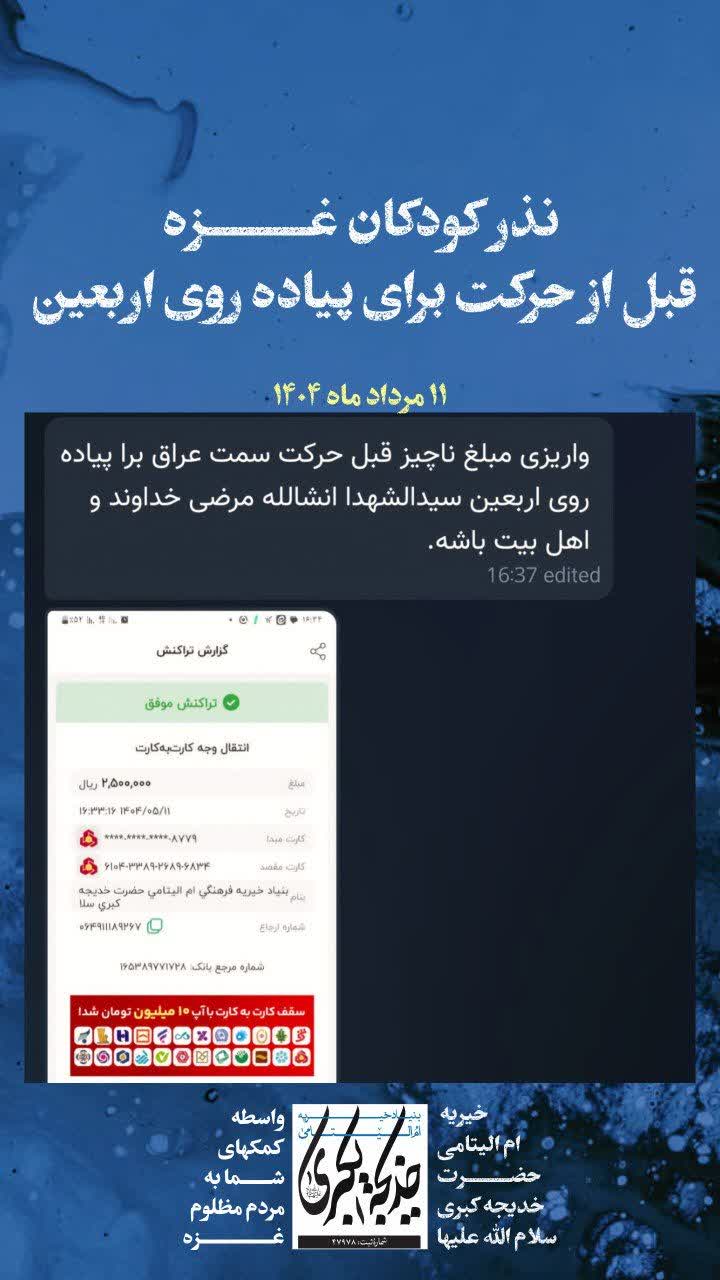 همه حسابها به نام بنیاد خیریه امالیتامی حضرت خدیجه کبری سلام الله علیها هستند.