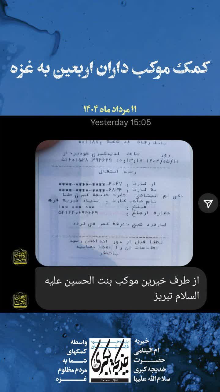 همه حساب‌ها به نام بنیاد خیریه ام‌الیتامی حضرت خدیجه کبری سلام الله علیها هستند.