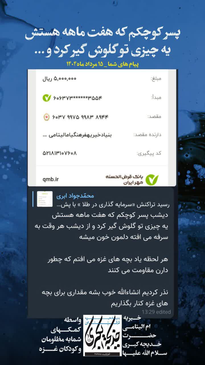 همه حساب‌ها به نام بنیاد خیریه ام‌الیتامی حضرت خدیجه کبری سلام الله علیها هستند.