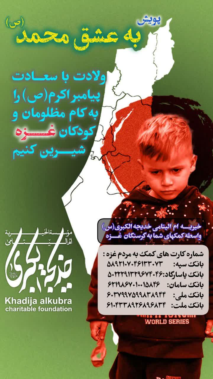 ولادت با سعادت پیامبر اکرم(ص) را به کام مظلومان و کودکان غزه شیرین کنیم