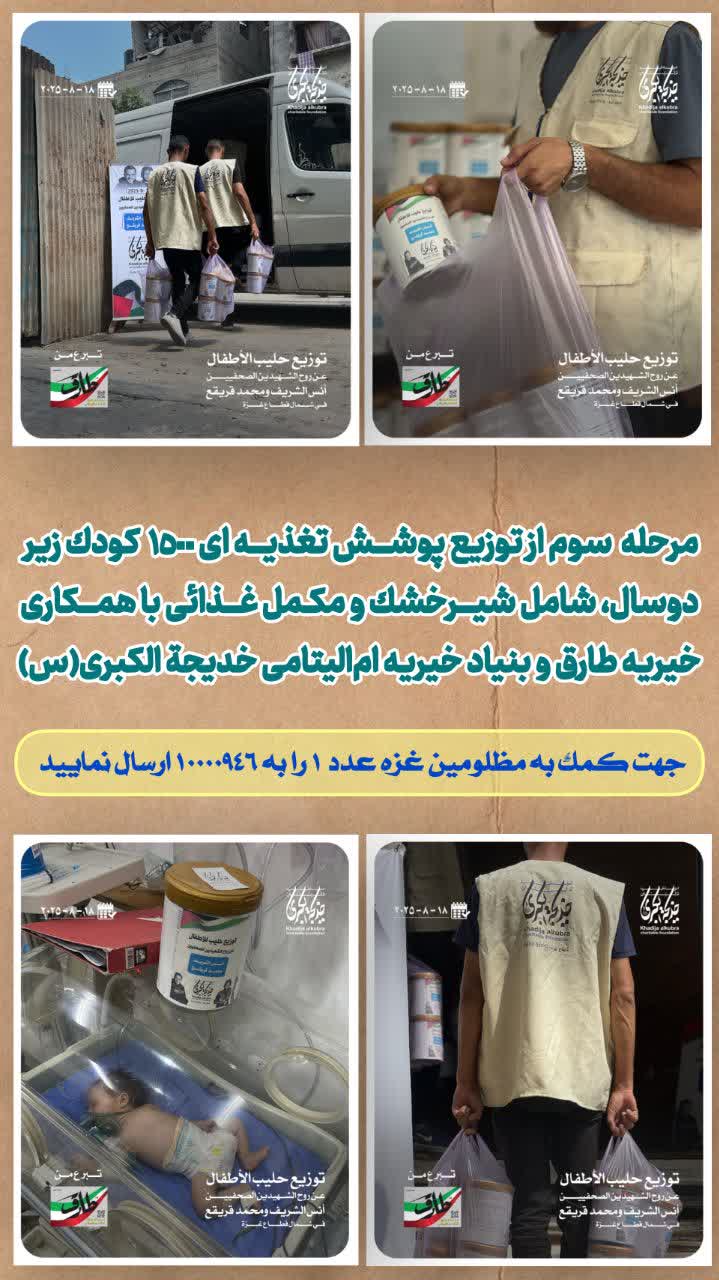 مرحله سوم از توزيع پوشش تغذيه اى ١٥٠٠ كودك زير دوسال ، شامل شيرخشك و مكمل غذائى با همکاری خيريه طارق و بنیاد خیریه امالیتامی خدیجة الکبری علیهاالسلام