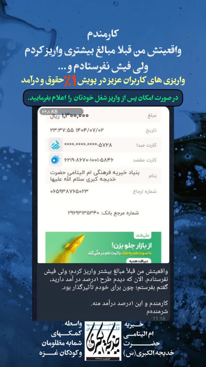 کارمندم‌ واقعیتش من قبلا مبالغ بیشتری واریز کردم ولی فیش نفرستادم و …