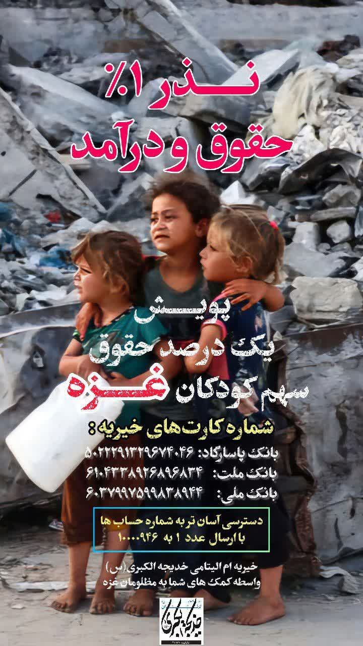 با اختصاص تنها ۱٪ از حقوق خود به کودکان غزه، در اطعام و امدادرسانی به آنها سهیم باشید