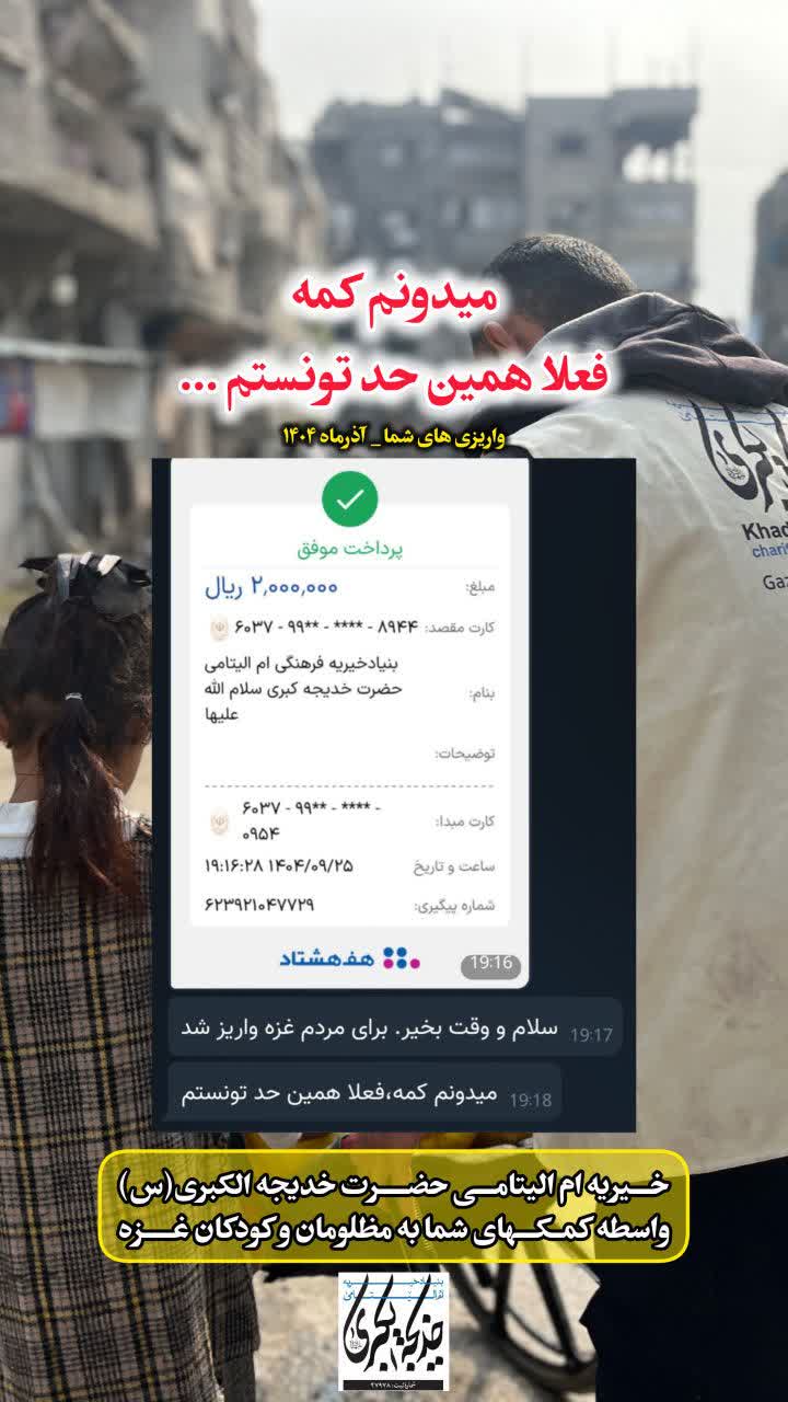 واسطه کمک‌های شما به مظلومان غزه
