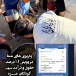 واریزی های شما در پویش ۱درصد حقوق و درآمد سهم کودکان غزه